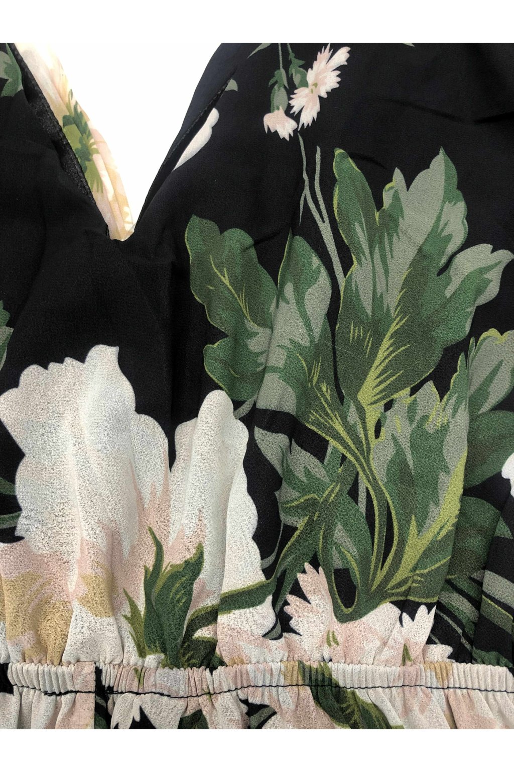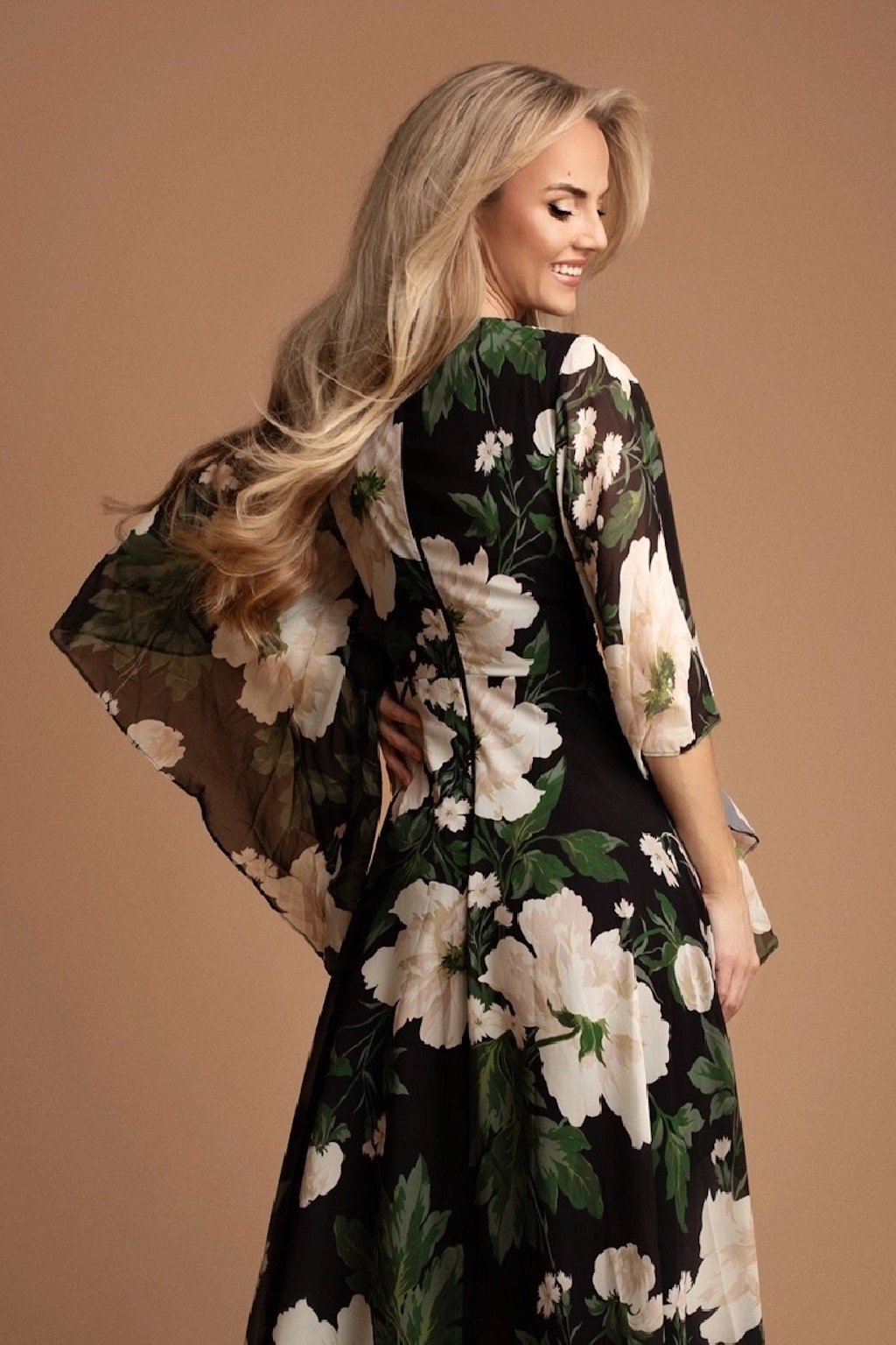 Poškodený tovar - Čierne kvetinové šaty s voľnými rukávmi