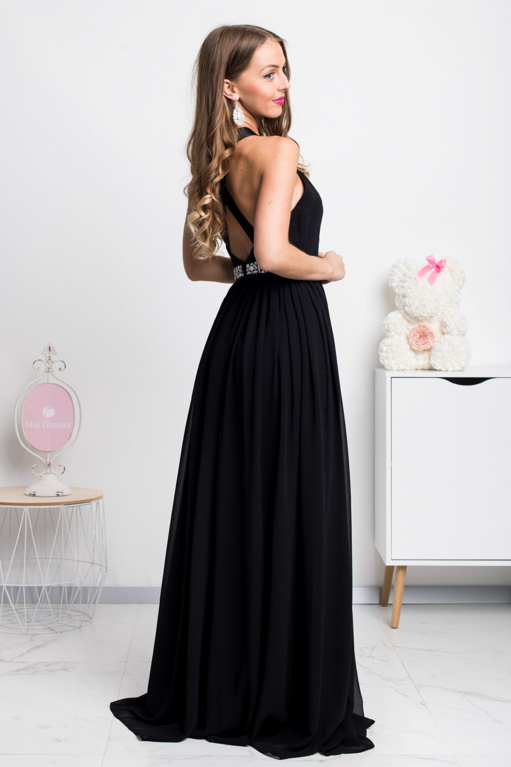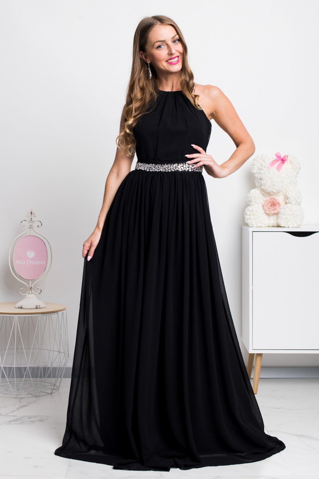 Poškodený tovar - Čierne spoločenské šifónové šaty