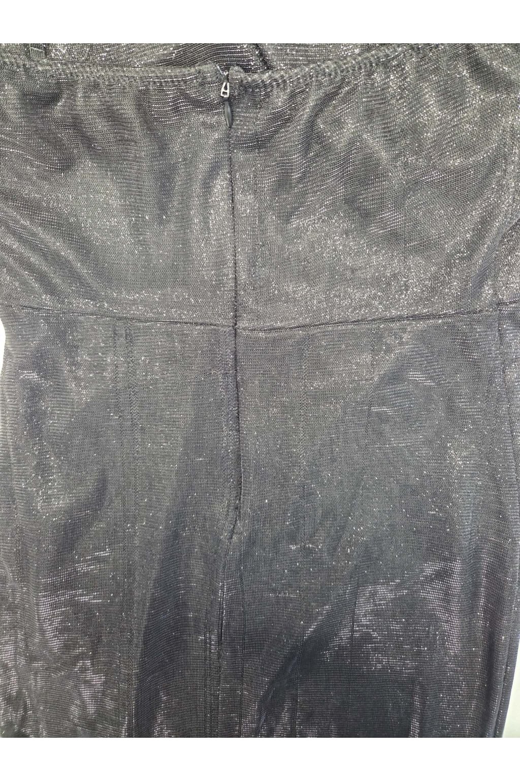 Poškodený tovar - Čierne trblietavé šaty s rozparkom