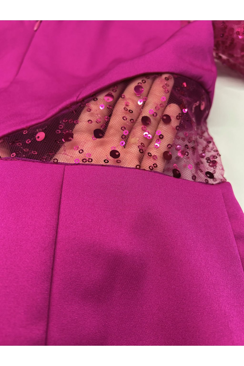 Poškodený tovar - Cyklámenové krátke šaty s trblietavým rukávom