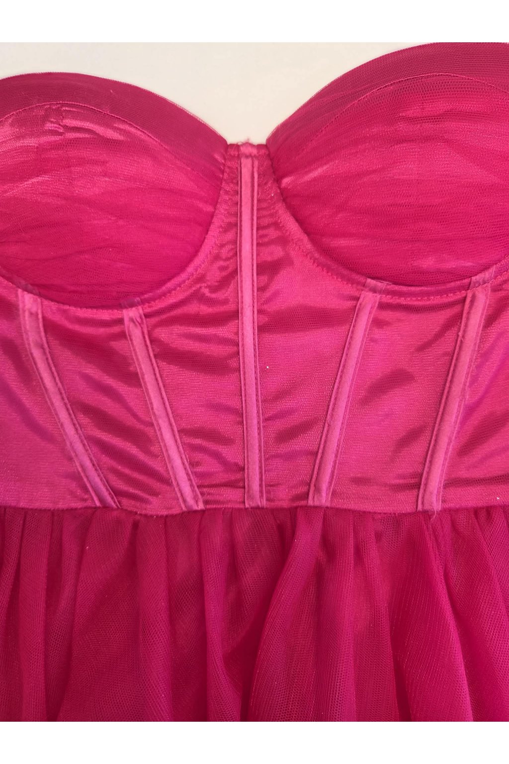 Poškodený tovar - Cyklámenové midi šaty s korzetom a tylovou sukňou