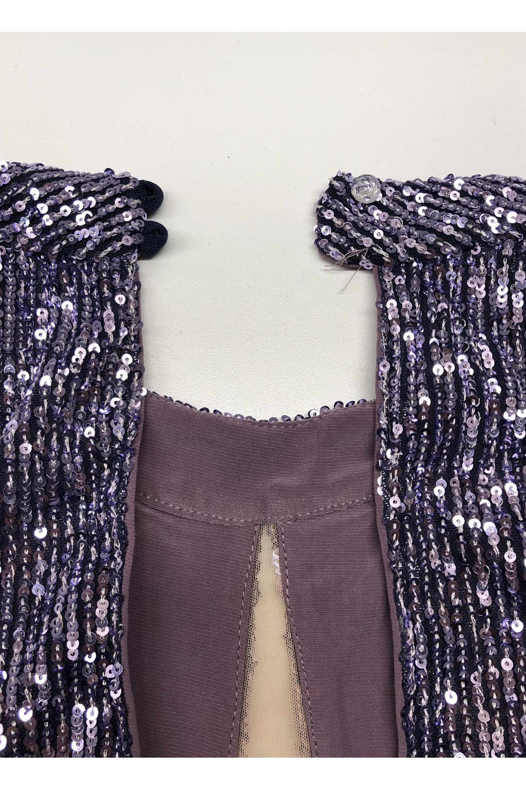Poškodený tovar - Fialové flitrované šaty s rozparkom