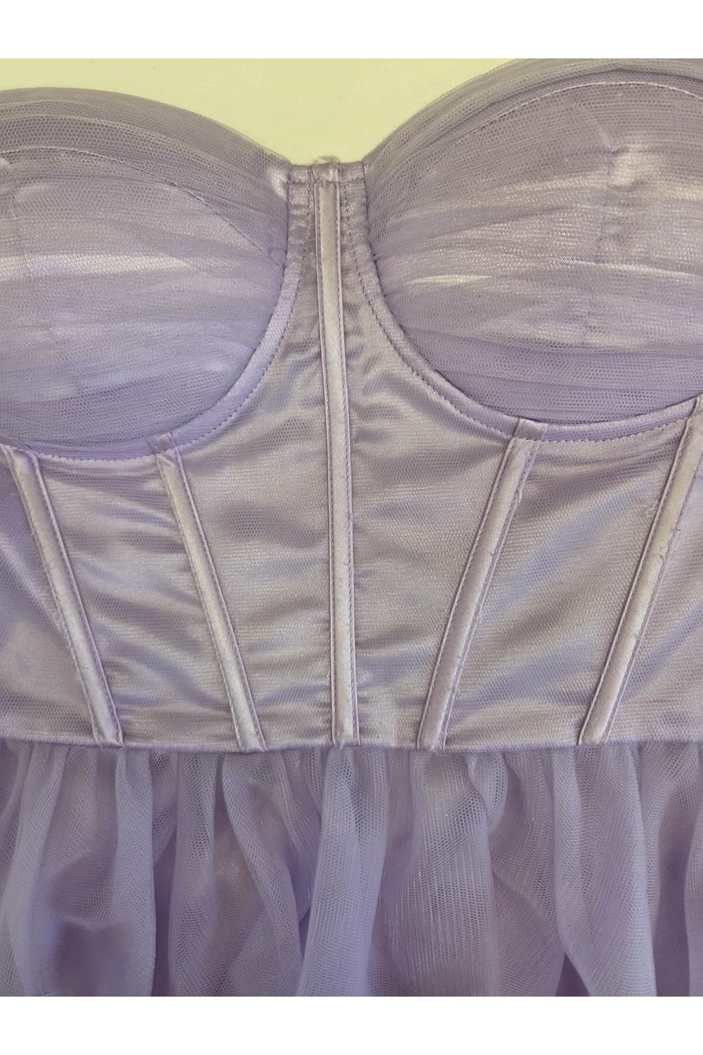 Poškodený tovar - Fialové midi šaty s korzetom a tylovou sukňou