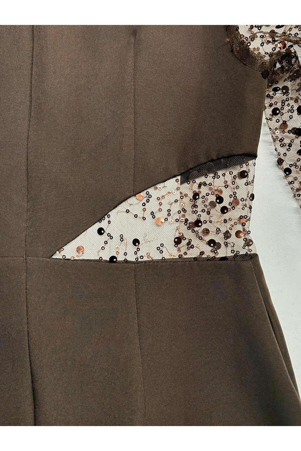 Poškodený tovar - Hnedé krátke šaty s trblietavým rukávom