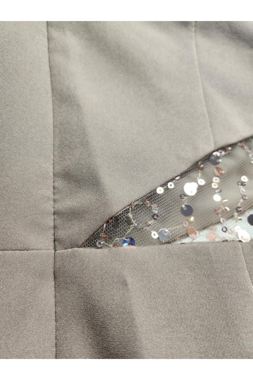 Poškodený tovar - Hnedé priliehavé šaty s trblietavým rukávom