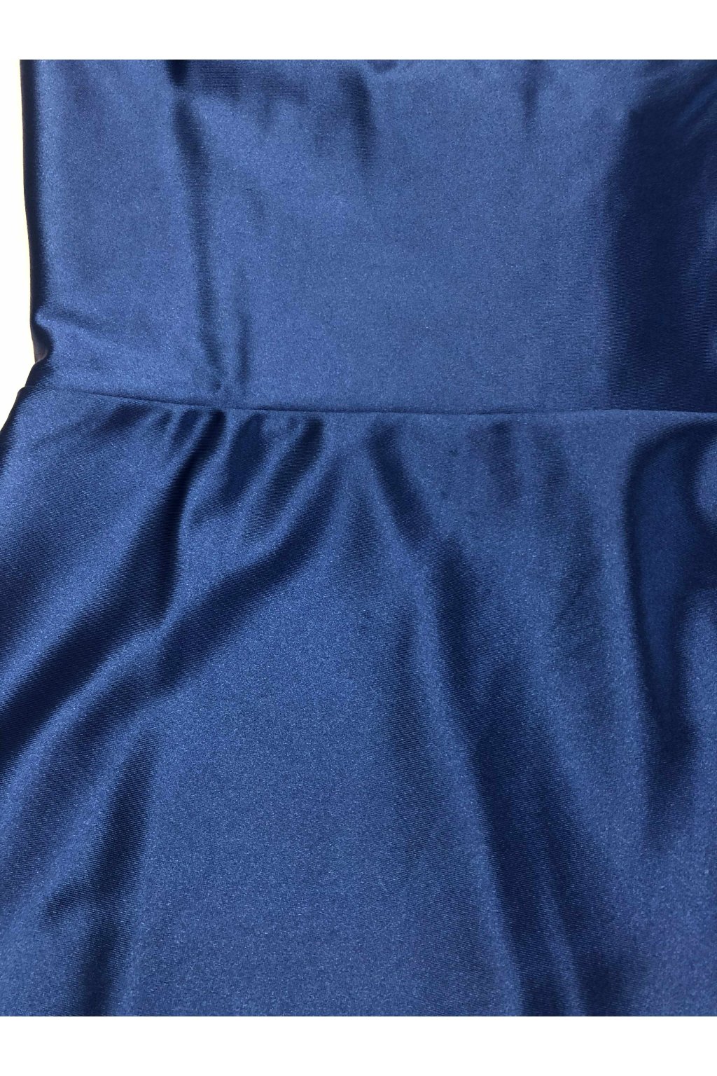Poškodený tovar - Modré lesklé šaty s rozparkom