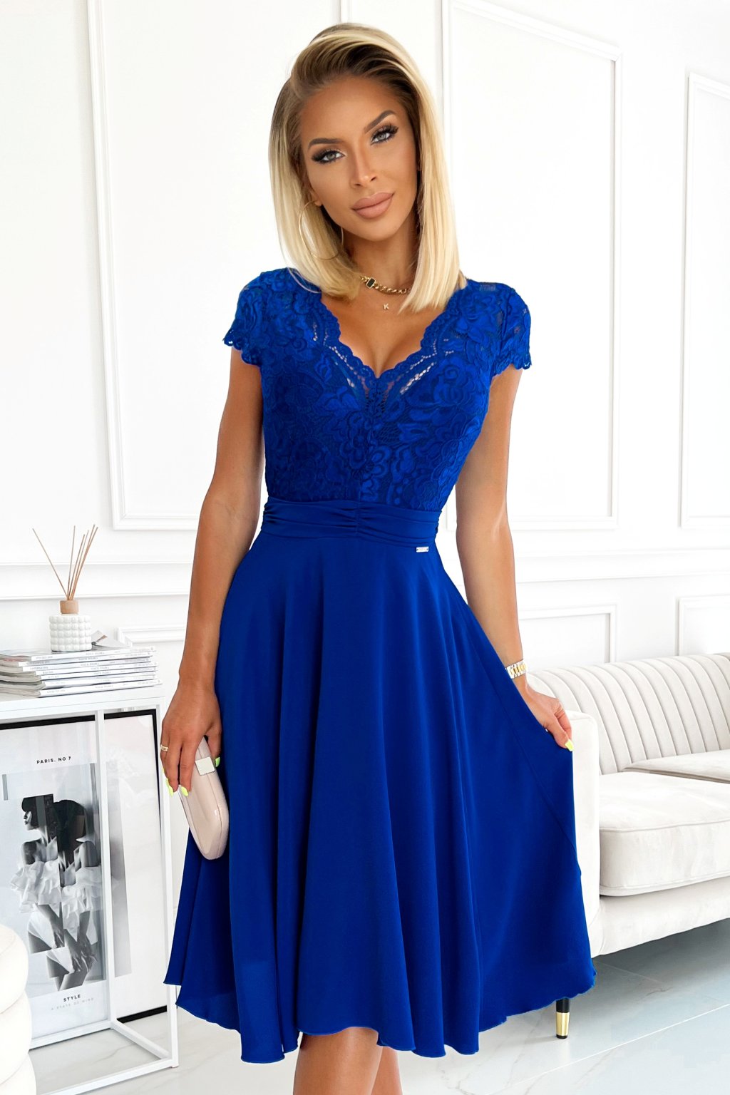 Romantická čipka a ľahká padavá sukňa - touto kombináciou jednoducho dosiahnete ženský elegantný vzhľad. Materiál je elastický a vzadu sa zapínajú zipsom.