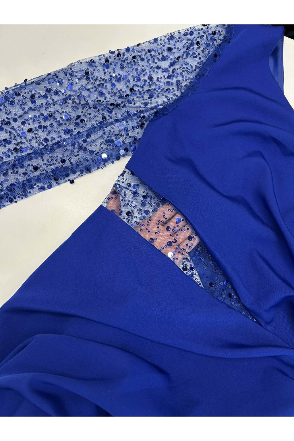 Poškodený tovar - Modré priliehavé šaty s trblietavým rukávom