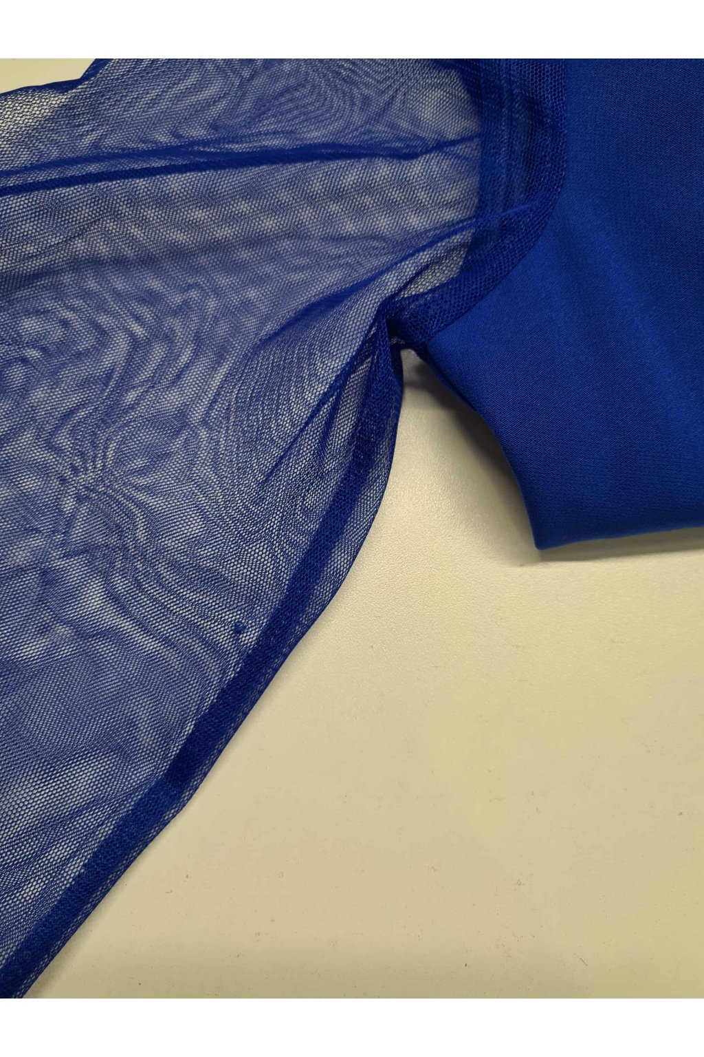 Poškodený tovar - Modré spoločenské šaty s tylovou sukňou a rukávmi