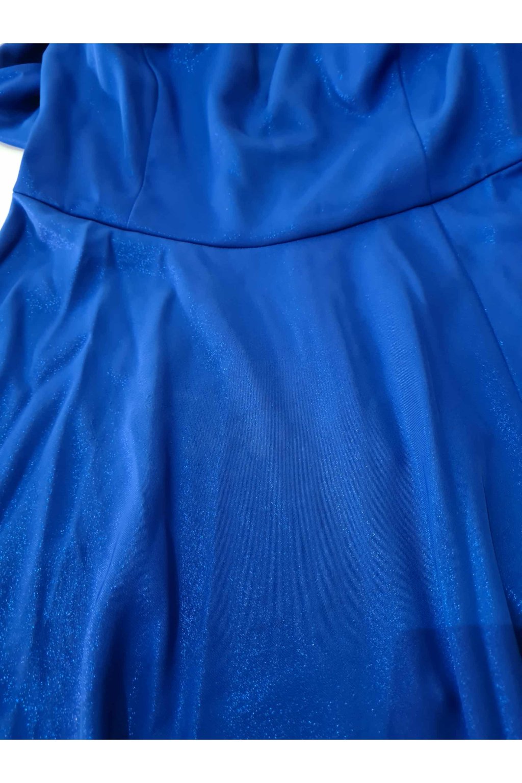 Poškodený tovar - Modré trblietavé šaty spustené na ramená