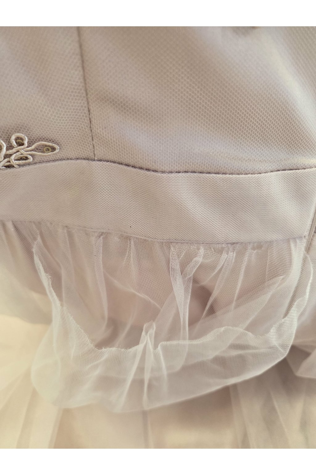 POZOR! Tento tovar je poškodený, z tohto dôvodu má zníženú cenu. Šaty majú po obvode poškodený tyl na viacerých miestach.