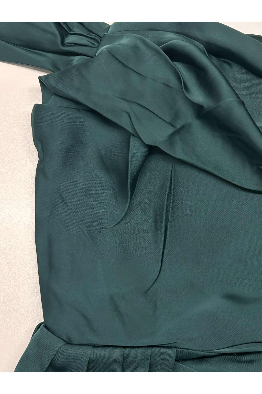 Poškodený tovar - Smaragdové priliehavé šaty spustené na ramená