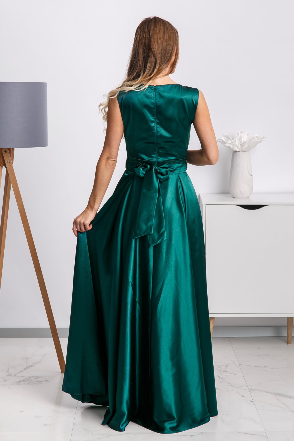 Satén – jemný, luxusný materiál, ktorý patrí ku krásnej žene. Nechajte vyniknúť svoj pôvab a šarm v týchto magických saténových šatách. Smaragdová farba im pridáva na tajuplnosti a štrasový opasok je klenotom týchto šiat, zaručene pritiahne každý pohľad. Presvedčili vás? Pretože my hovoríme „wau“!