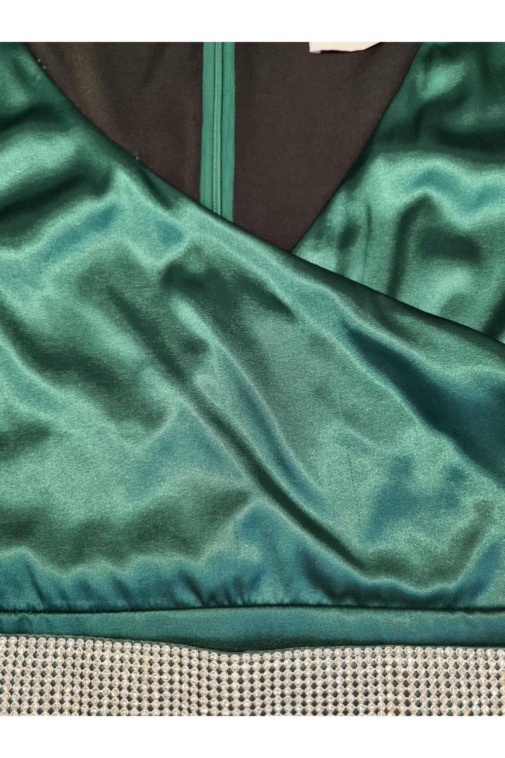 Poškodený tovar - Smaragdové spoločenské šaty so štrasovým opaskom