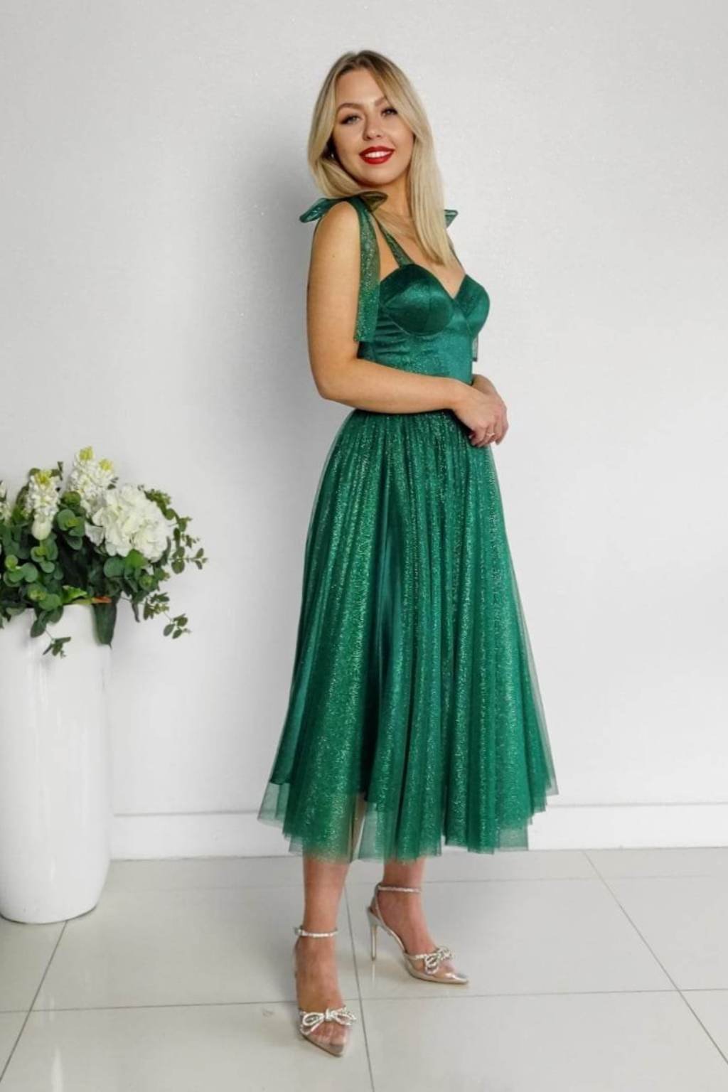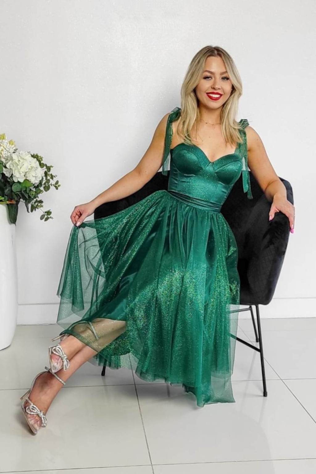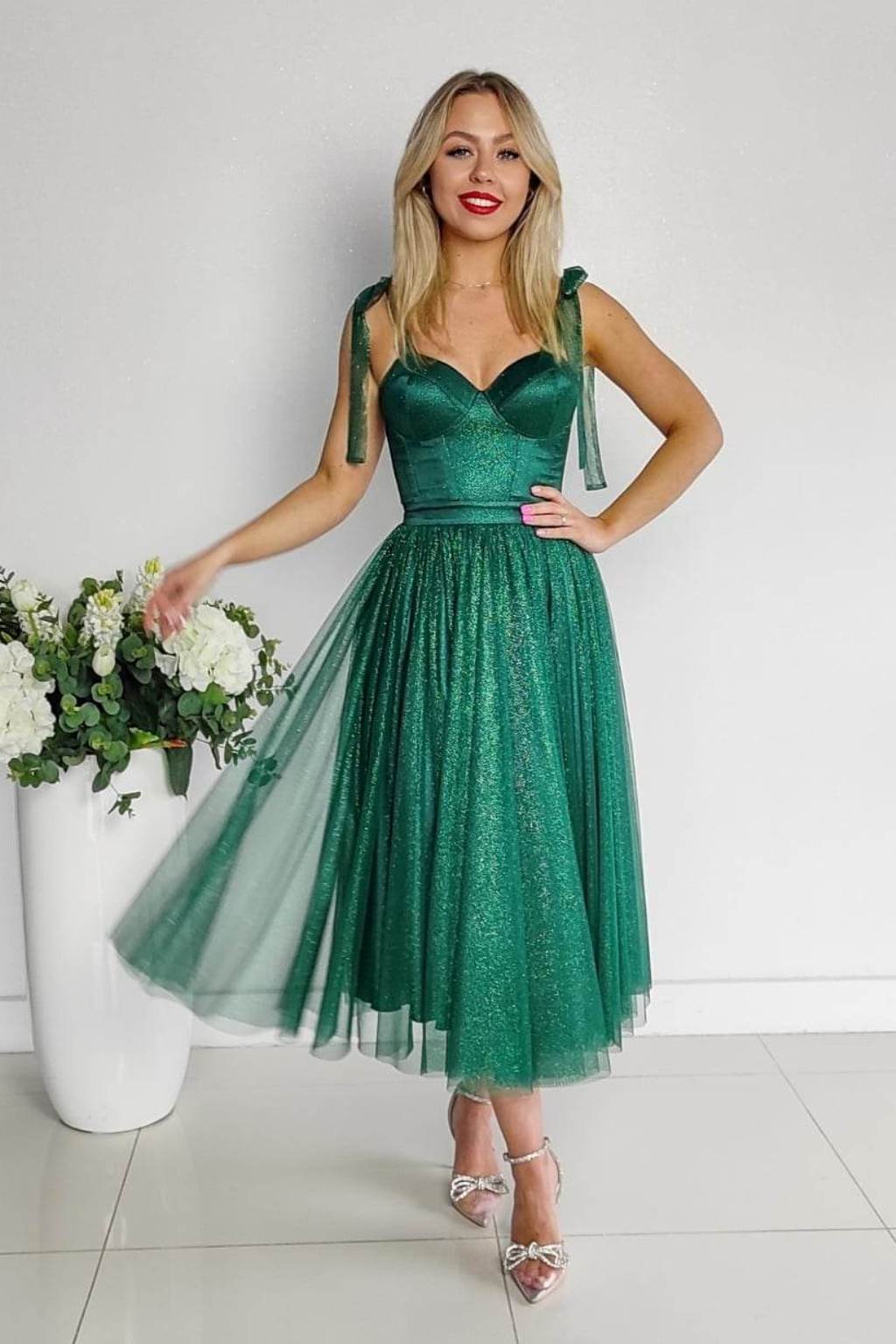 Poškodený tovar - Smaragdové trblietavé tylové midi šaty