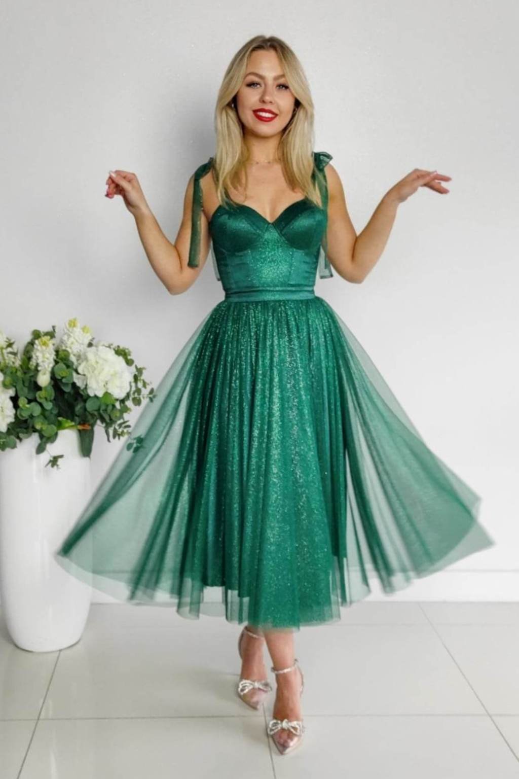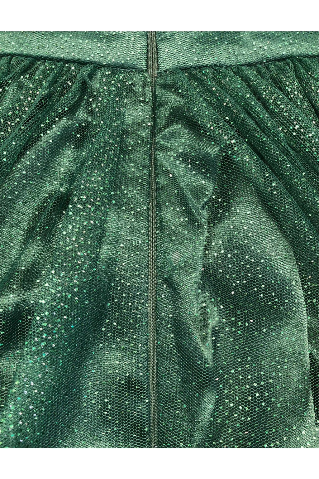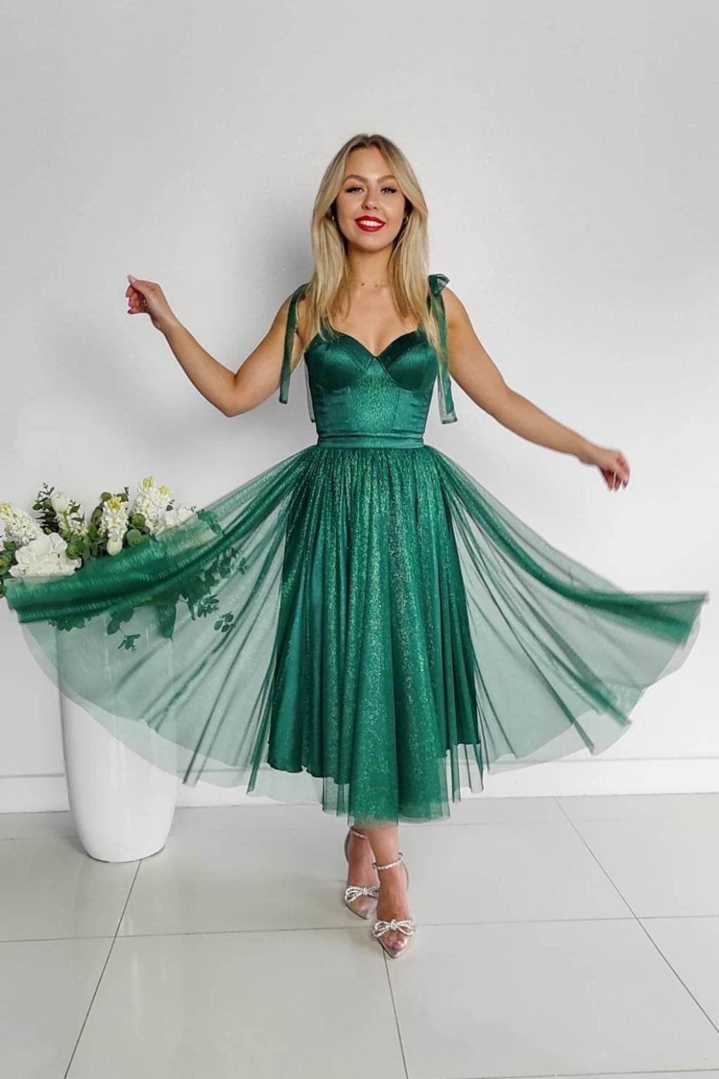 Poškodený tovar - Smaragdové trblietavé tylové midi šaty