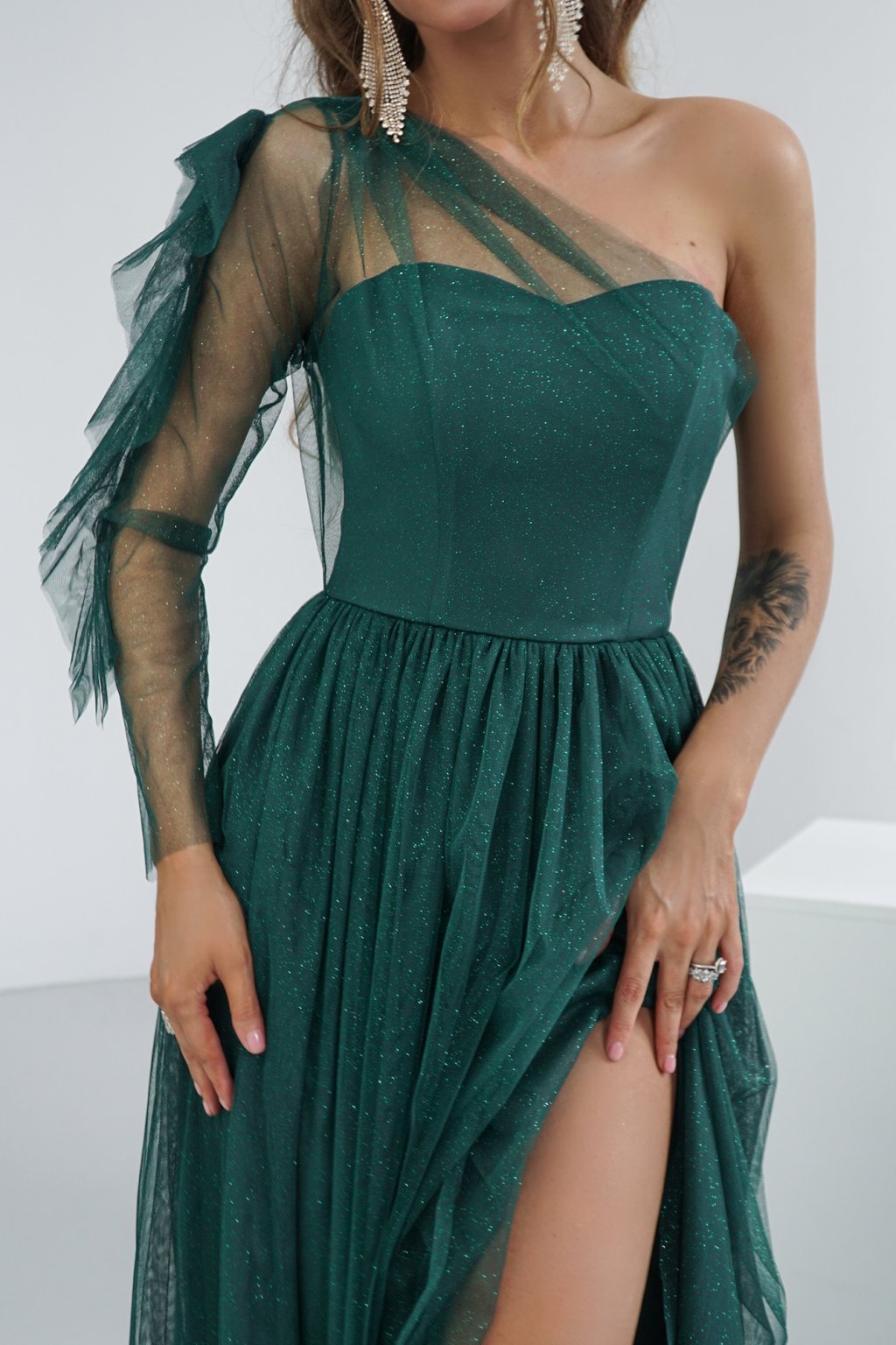 Poškodený tovar - Smaragdové tylové trblietavé šaty