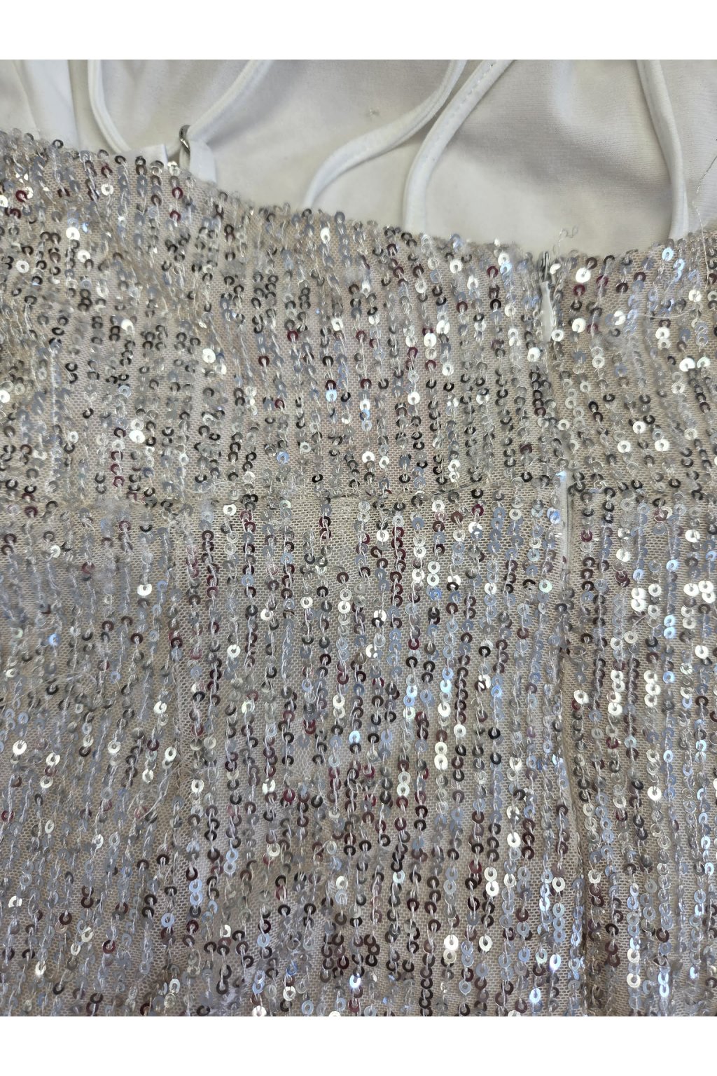 Poškodený tovar - Smotanové flitrované šaty s odhaleným chrbtom