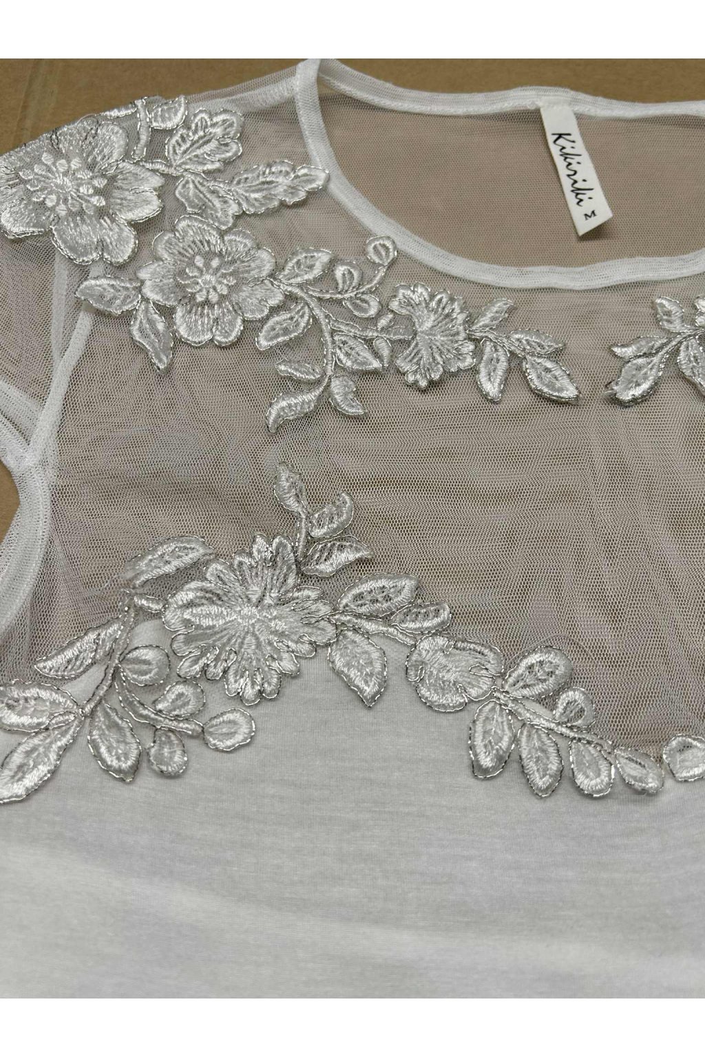 Poškodený tovar - Smotanový top so sieťkou zdobenou kvietkami