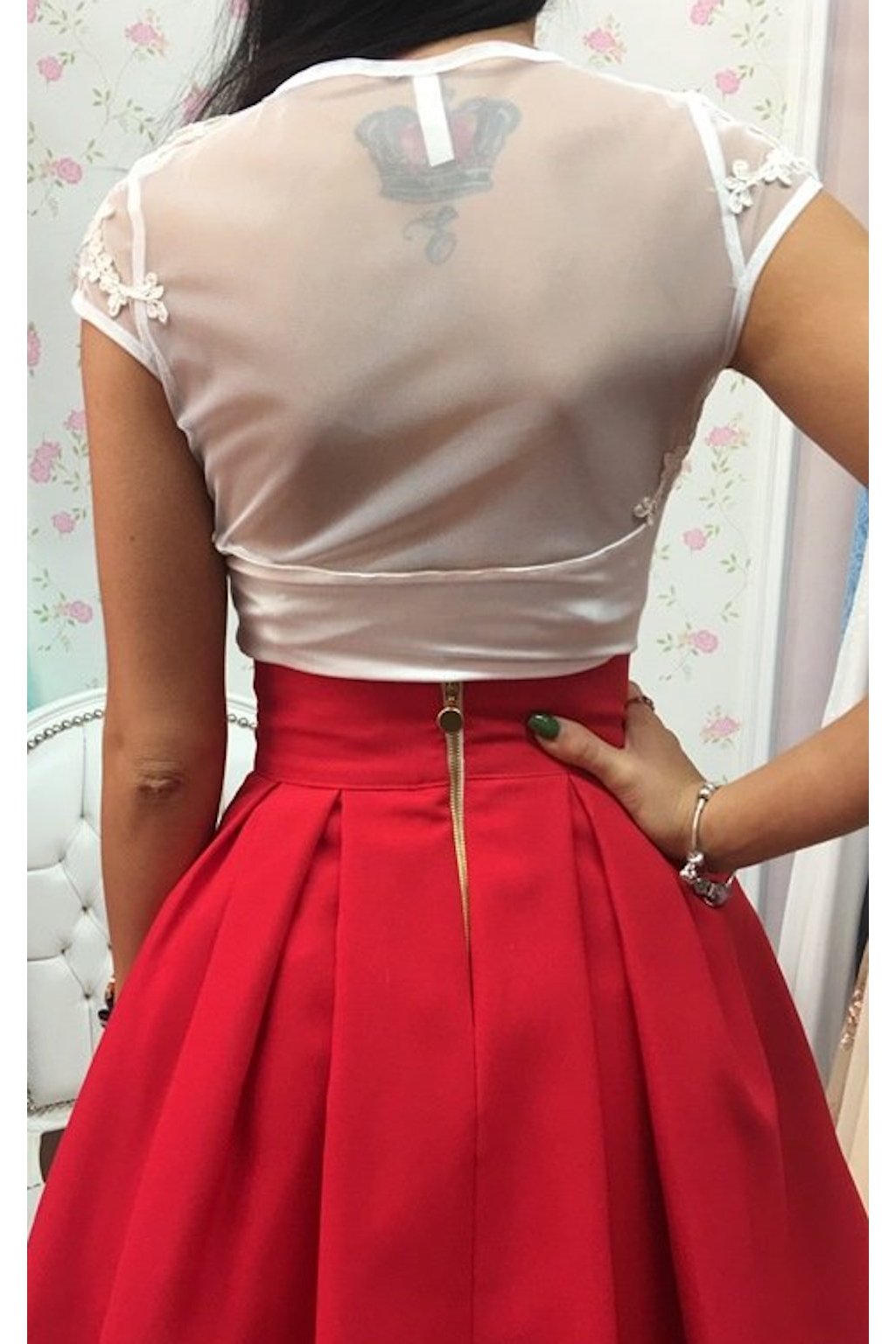 Elegantný top s našitými kvetmi dodá vášmu šatníku sviežosť, a preto by v ňom určite nemal chýbať. Konkrétne tento je doplnený o jemný tyl, ktorý dodá vášmu outfitu sviatočnejší ráz.
