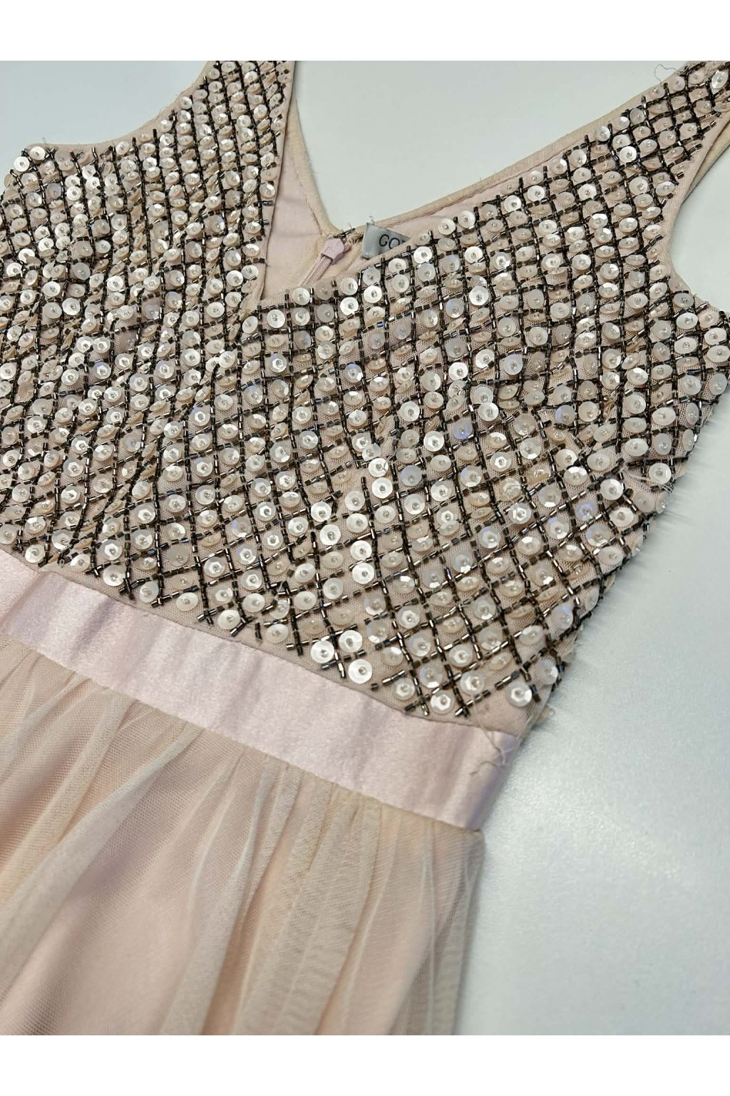 POZOR! Tento tovar je poškodený, z tohto dôvodu má zníženú cenu. Šaty majú vypadané flitre na viacerých miestach.