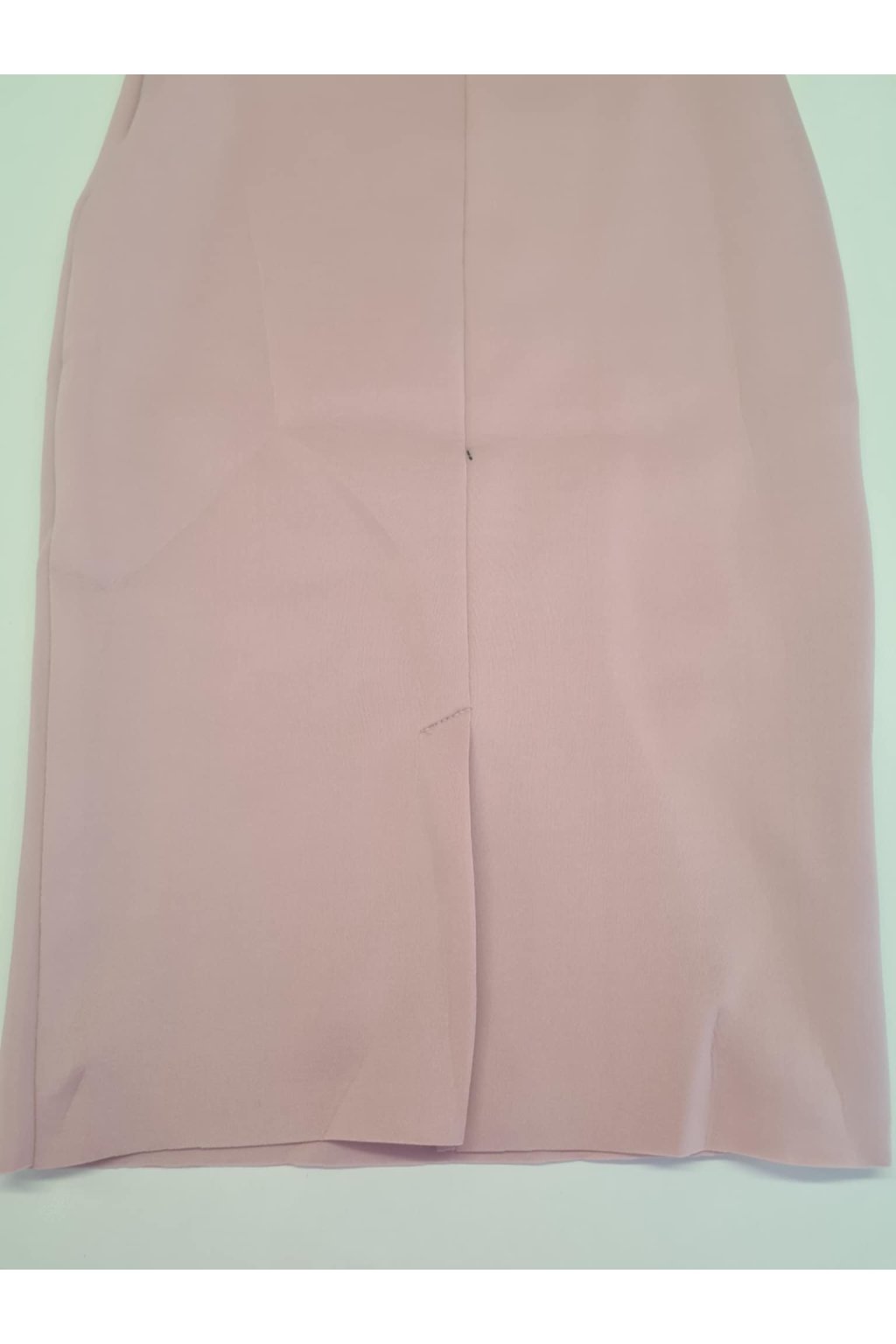 Elegantné midi šaty v romantickej ružovej farbe majú dekolt lemovaný mohutným volánom, ktorý si krásne drží nadýchaný tvar. Priliehavý strih šiat podčiarkne ženské krivky a vkusne odhalené rameno sa postará o príťažlivý vzhľad. Materiál je elastický.