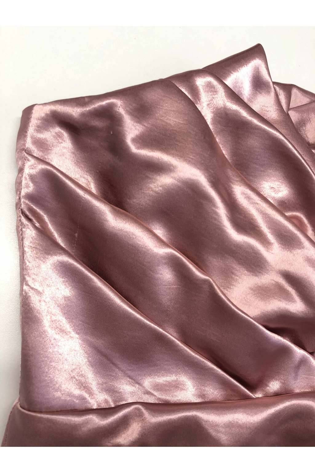 Šaty, ktoré rozprávajú rečou vášne a elegancie. Saténová látka jemne objíma siluetu a vytvára dojem kvetu, ktorý práve rozkvitá. Tvarovaný detail na živôtiku pripomína ružu v plnom rozkvete – symbol ženskosti, krásy a nežnosti. Ideálne pre večer, keď chceš zažiariť a zanechať nezabudnuteľný dojem. Na bočnej strane sa zapínajú zipsom.