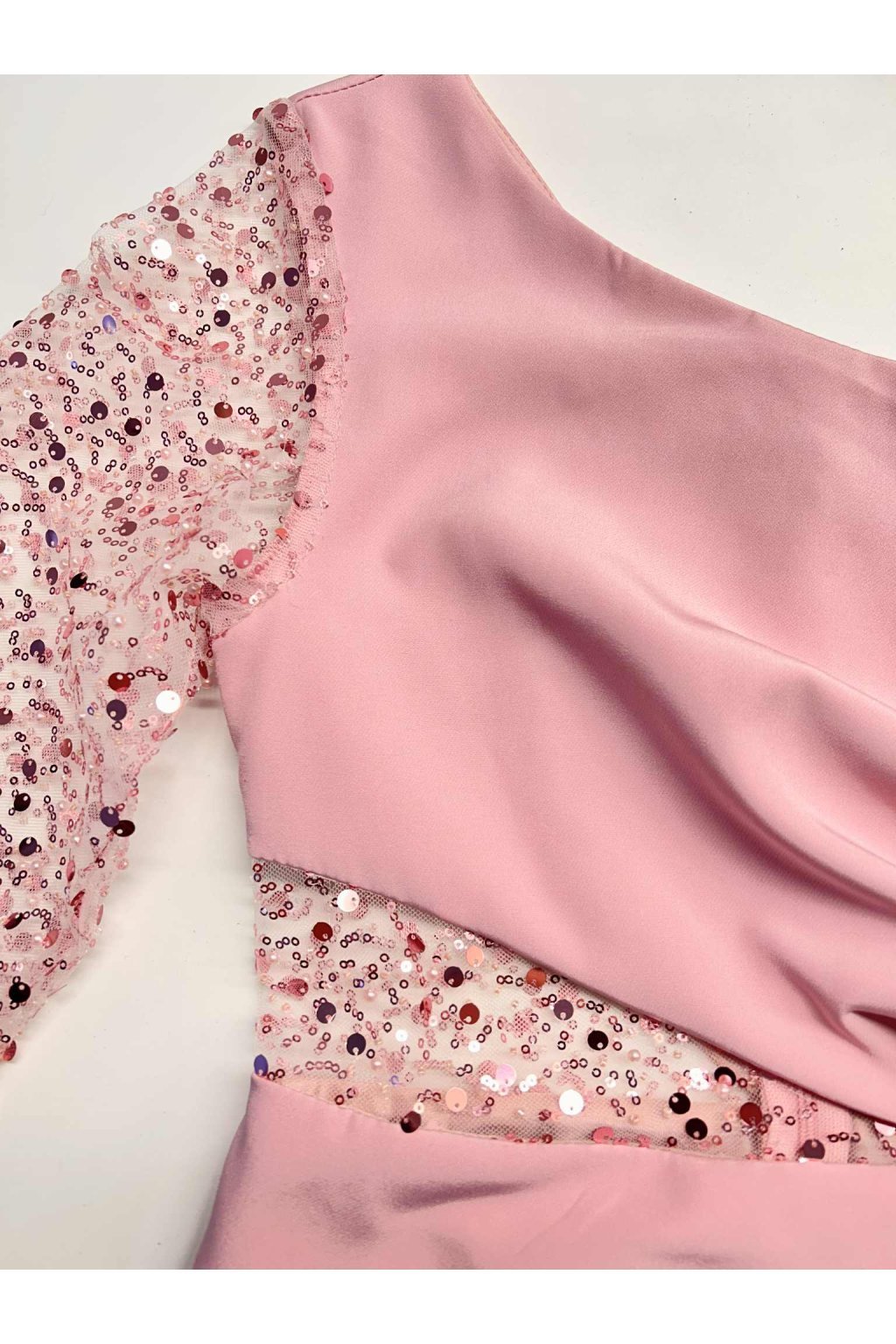 Poškodený tovar - Staroružové priliehavé šaty s trblietavým rukávom