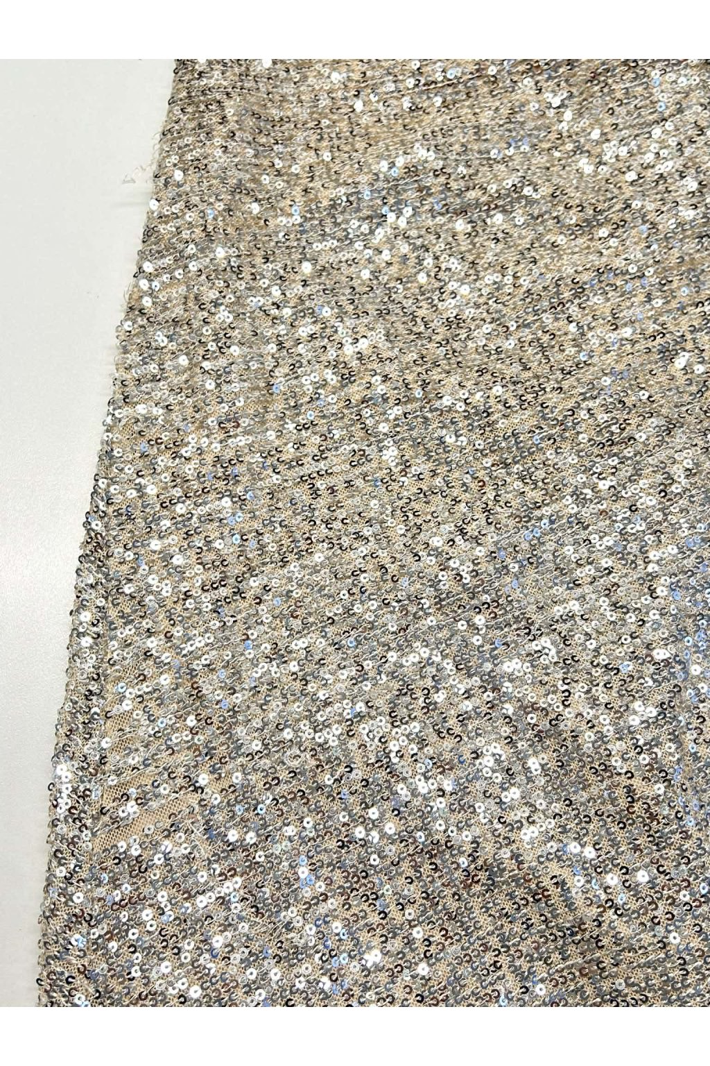Poškodený tovar - Strieborné flitrované šaty s pierkami