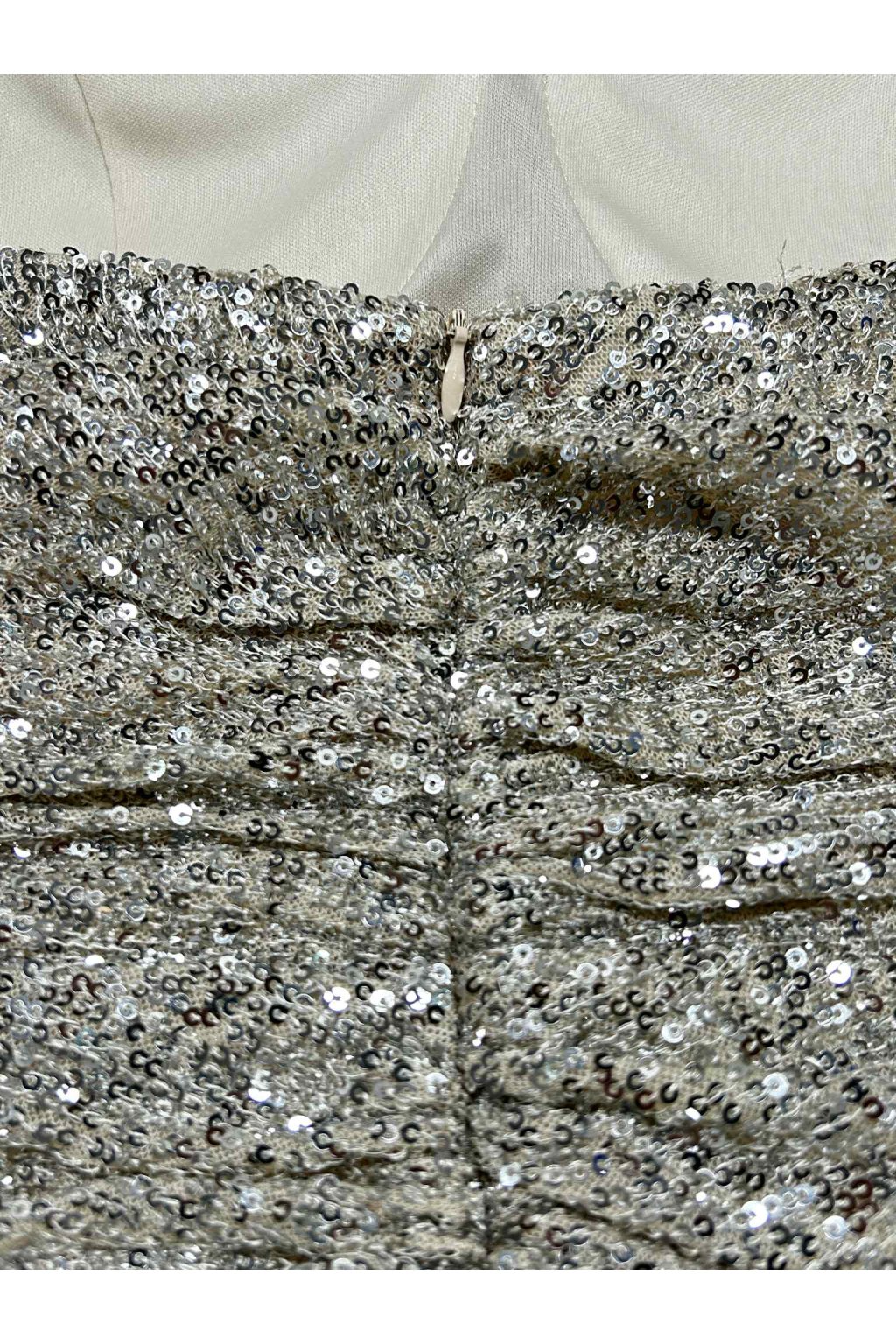Poškodený tovar - Strieborné flitrované šaty s pierkami