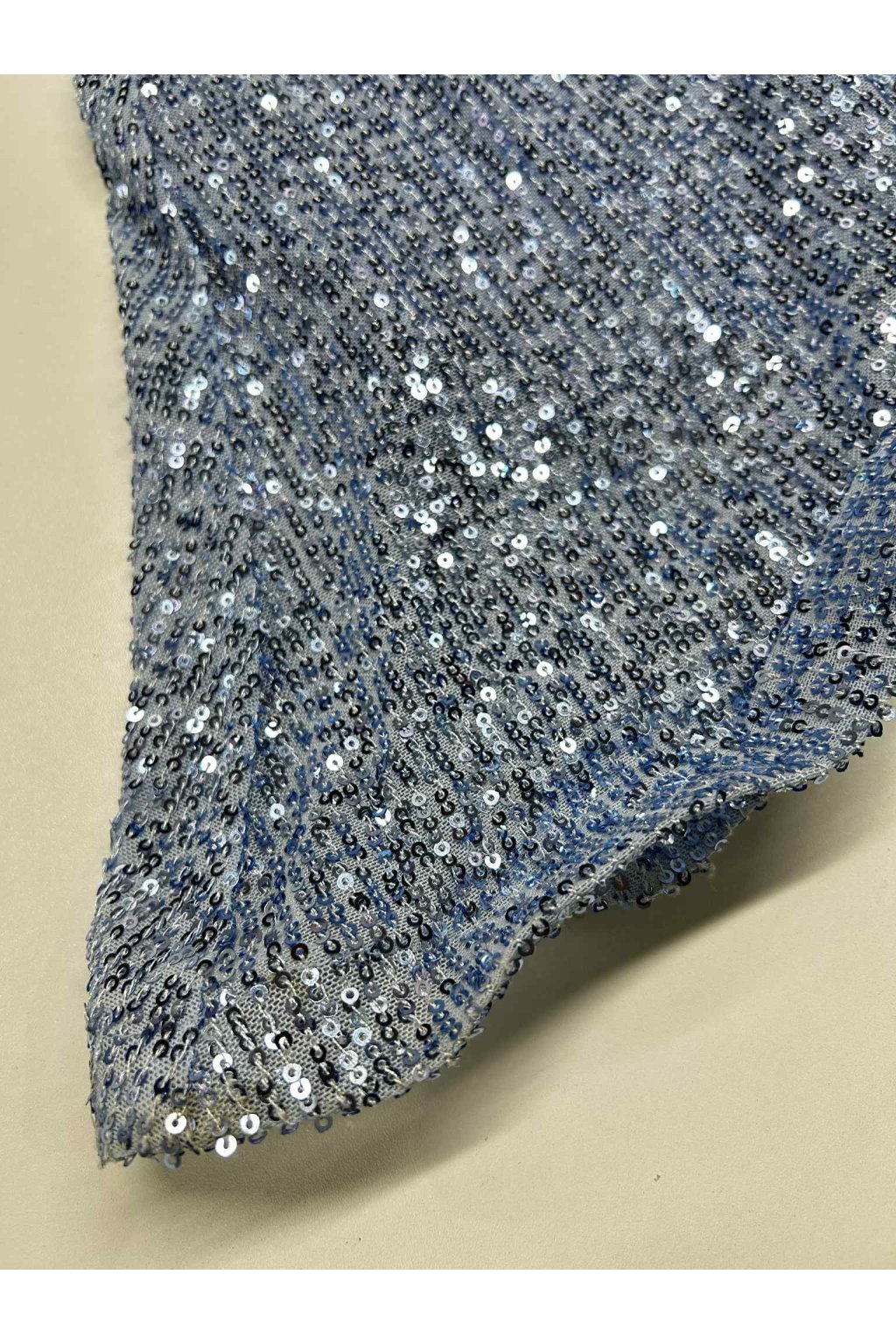 Poškodený tovar - Svetlomodré flitrované šaty s rozparkom