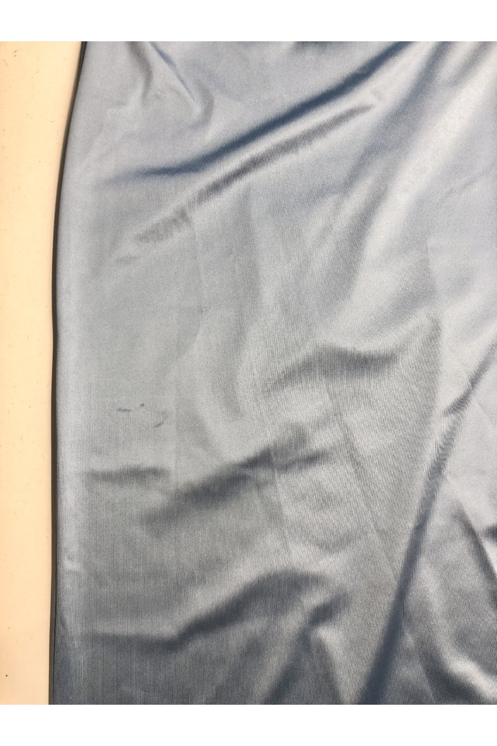 Poškodený tovar - Svetlomodré lesklé priliehavé šaty s rozparkom