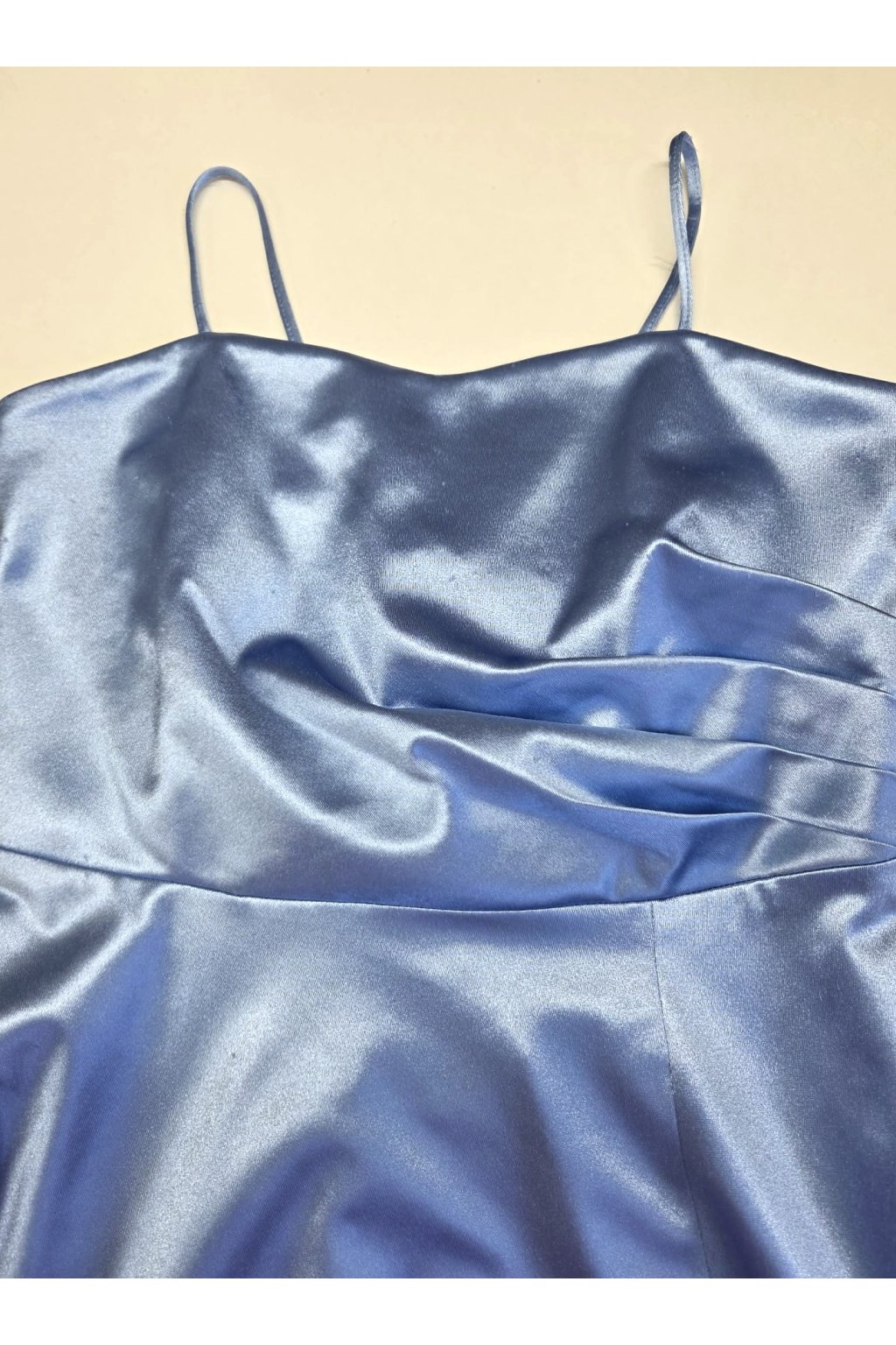 Poškodený tovar - Svetlomodré lesklé šaty na ramienka