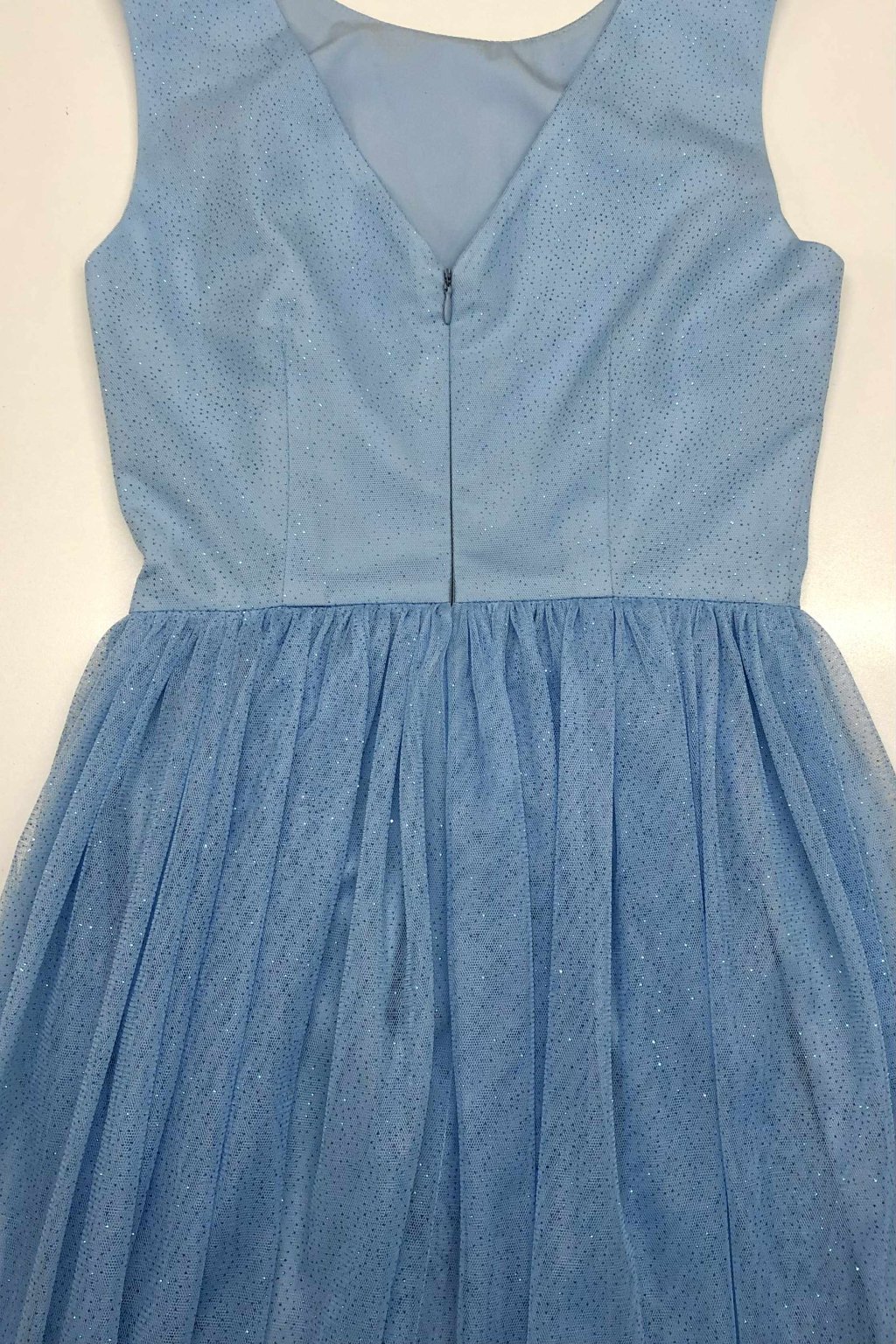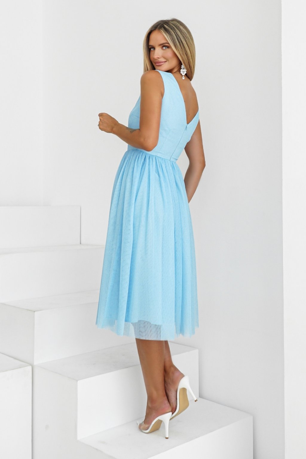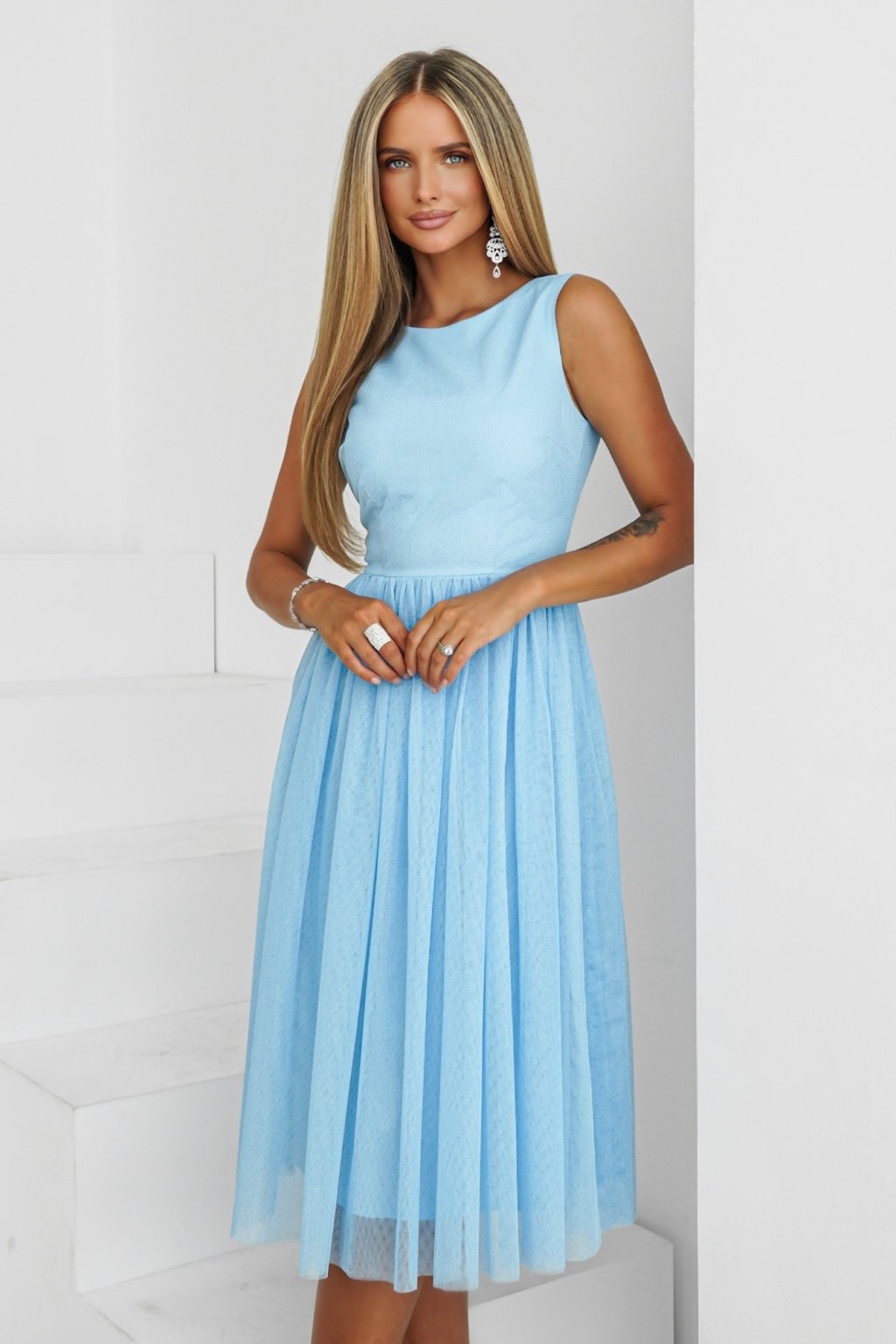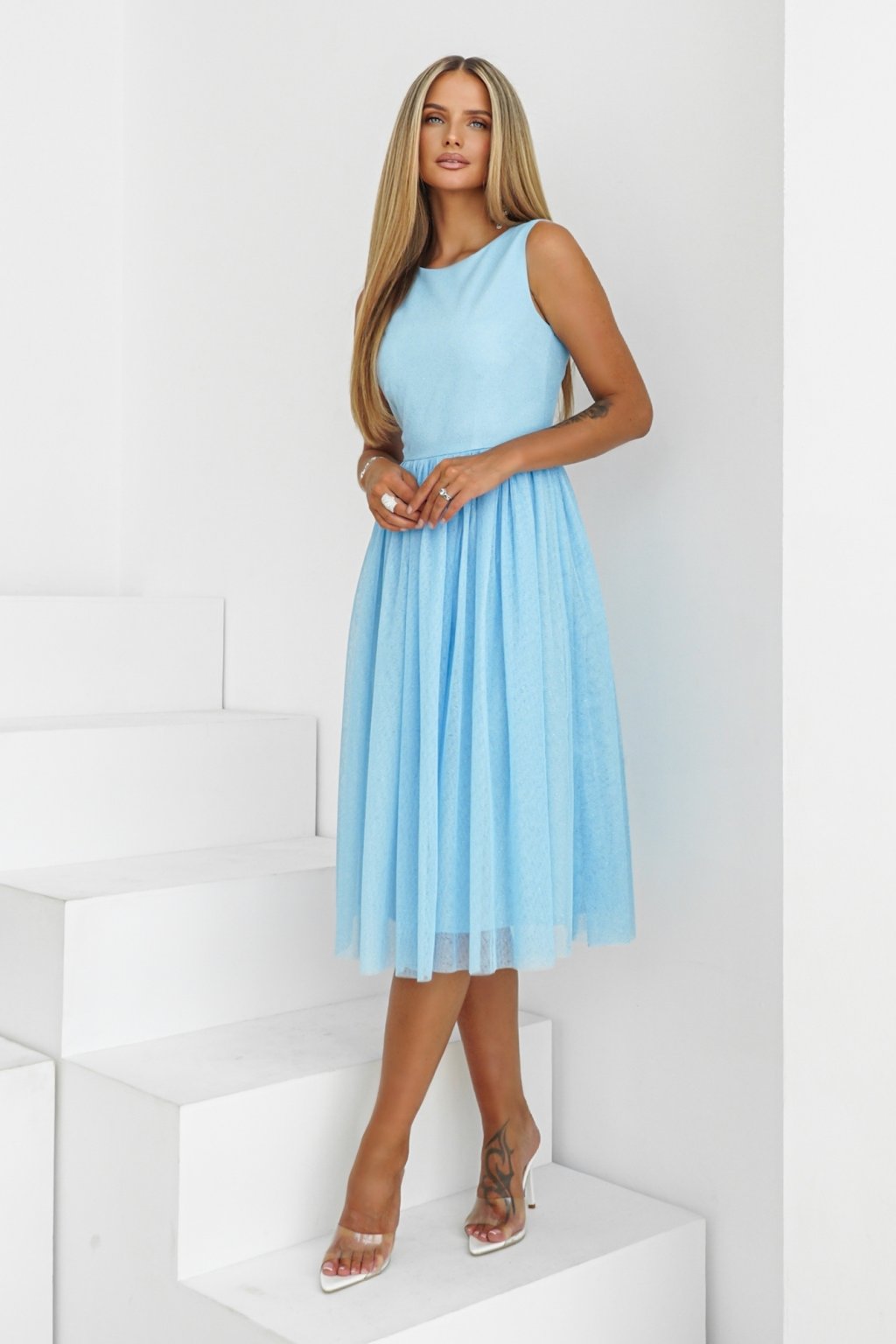 Poškodený tovar - Svetlomodré tylové trblietavé midi šaty