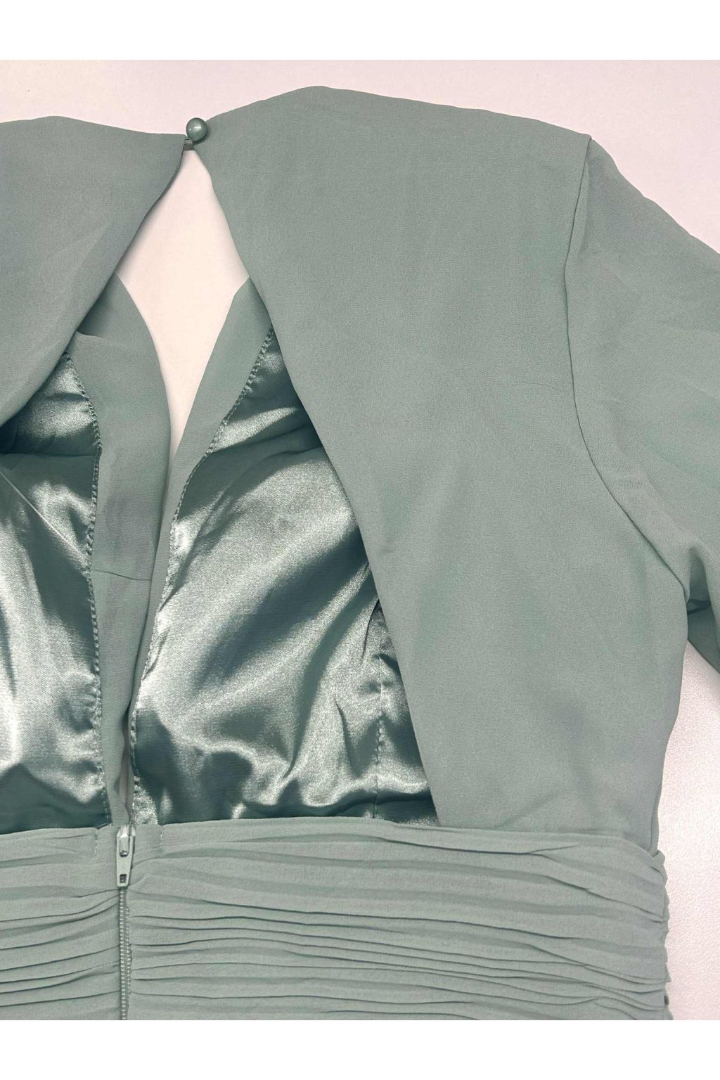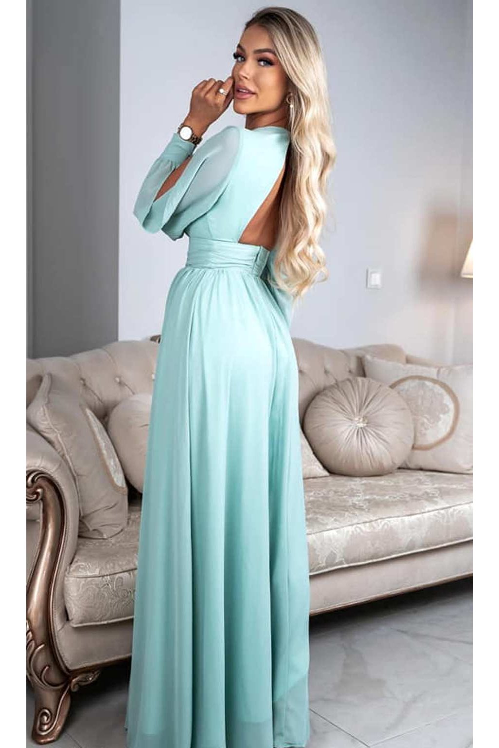 Poškodený tovar - Svetlozelené šifónové šaty s odhaleným chrbtom