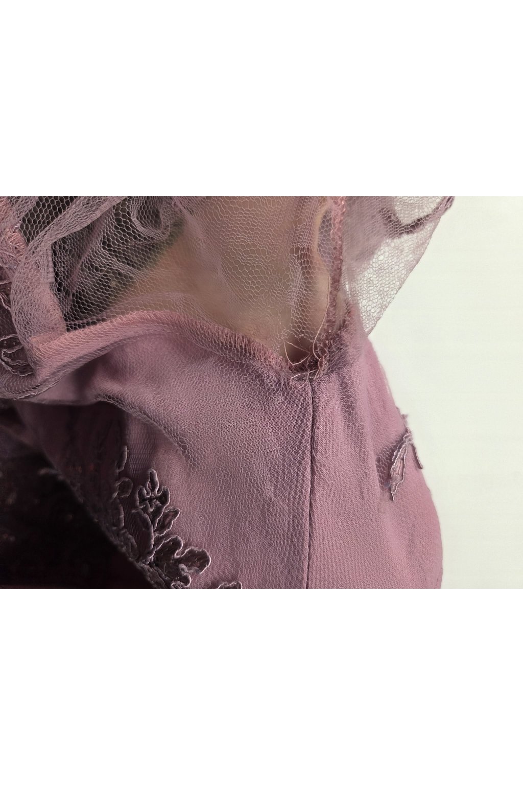 Poškodený tovar - Tmavoružové spoločenské šaty s krajkou a saténovou sukňou