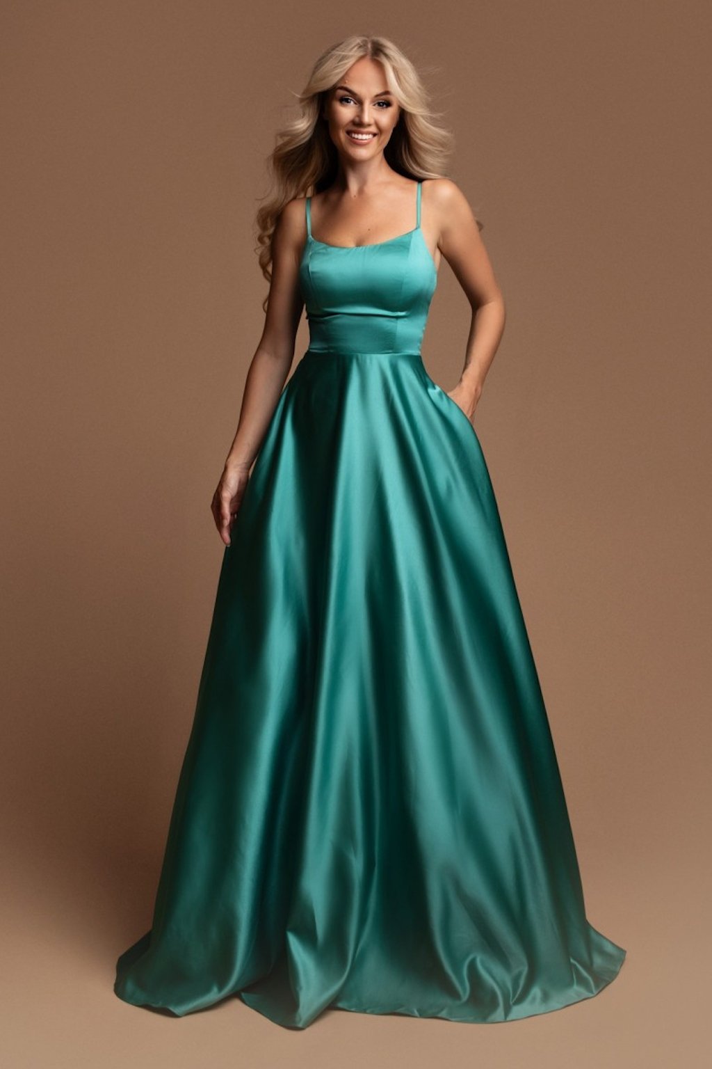 Poškodený tovar - Tyrkysové spoločenské šaty na ramienka