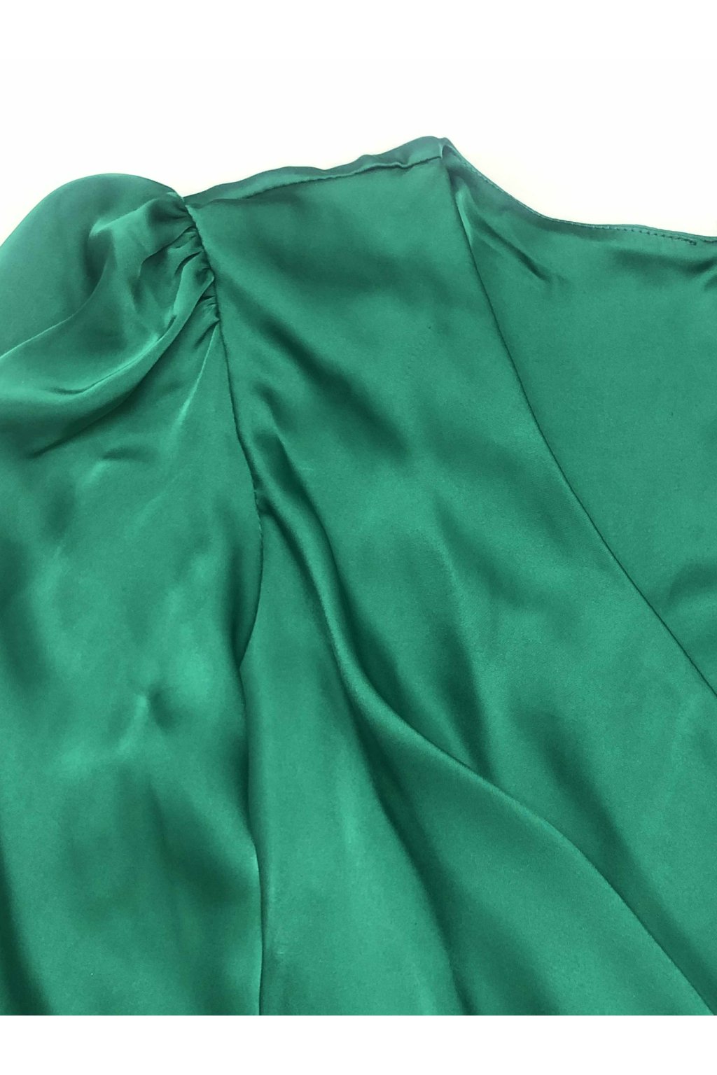 Poškodený tovar - Zelené krátke šaty s balónovými rukávmi