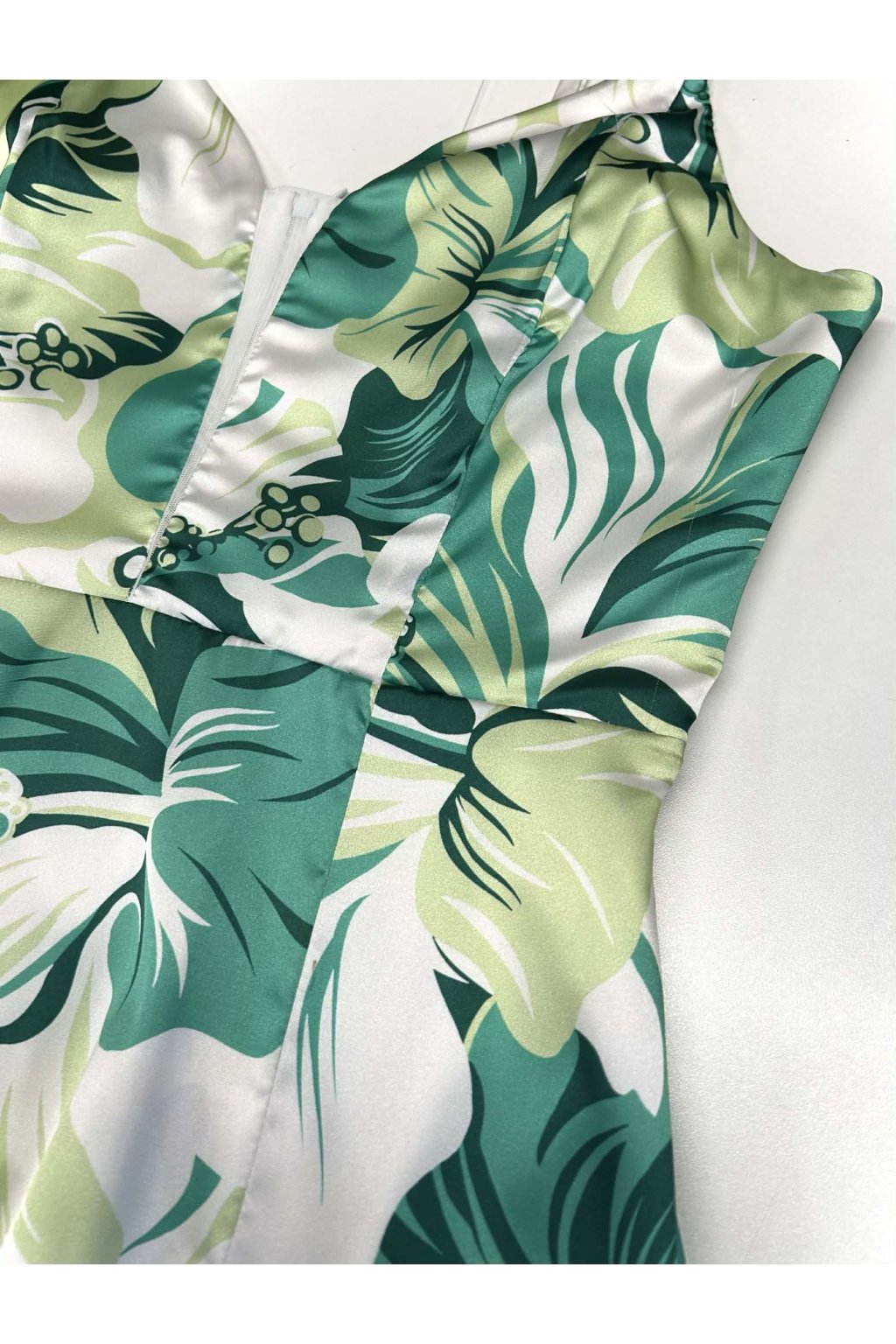 V týchto krásnych šatách zaručene neostanete bez povšimnutia vďaka pestrým kvetinám a vysokému nápadnému rozparku. Odhalený krok vám prispeje k atraktívnemu vzhľadu. Vzadu sa zapínajú zipsom.