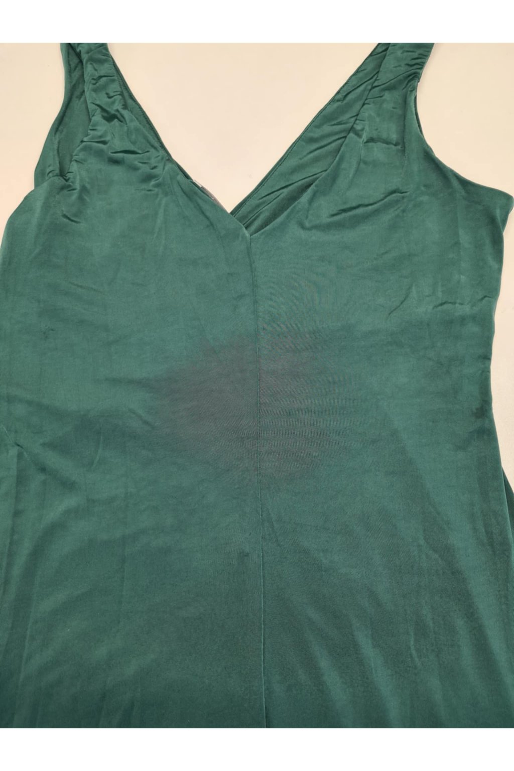 Poškodený tovar - Zelené priliehavé šaty s riasením a rozparkom