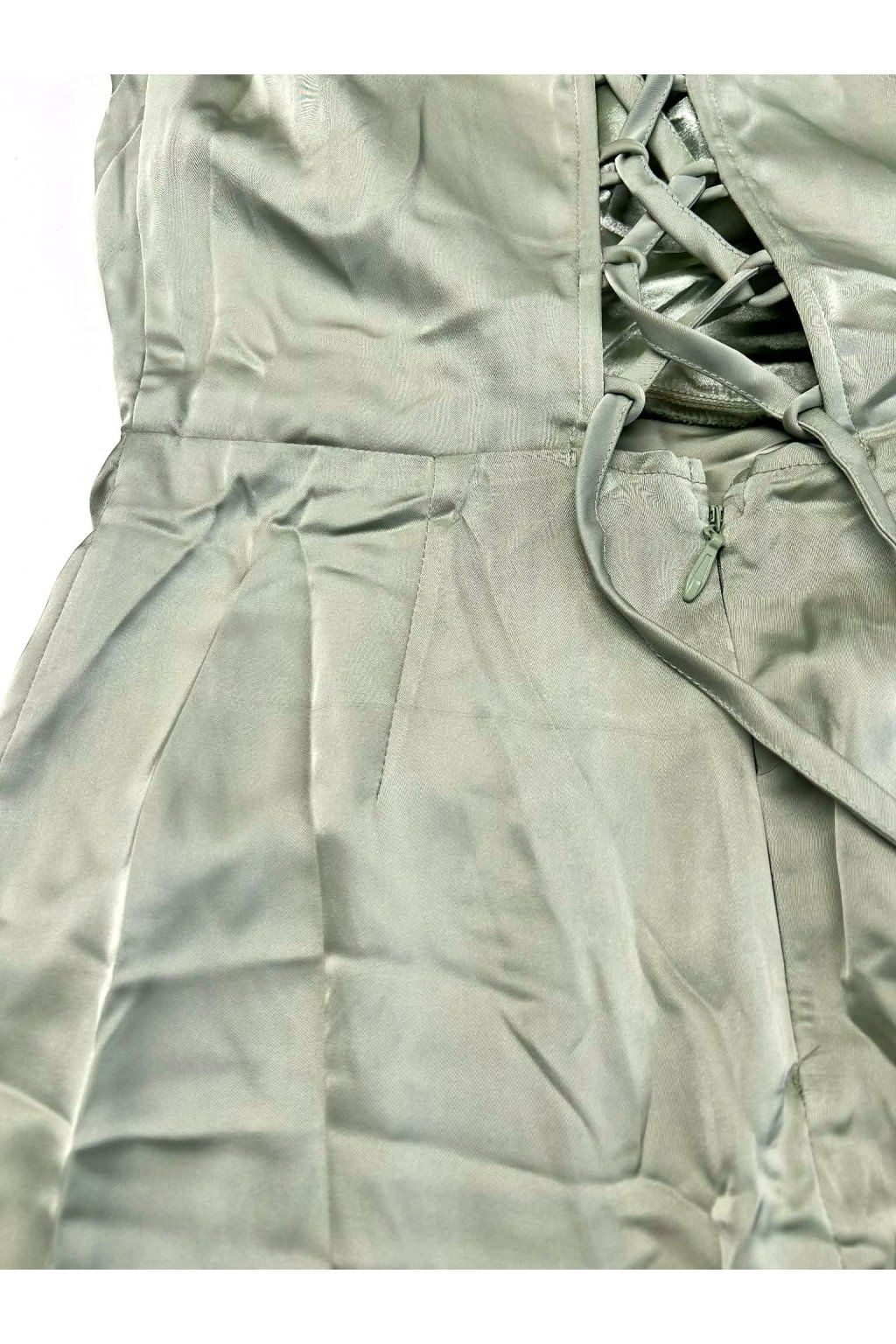 Poškodený tovar - Zelené priliehavé šaty spustené na ramená