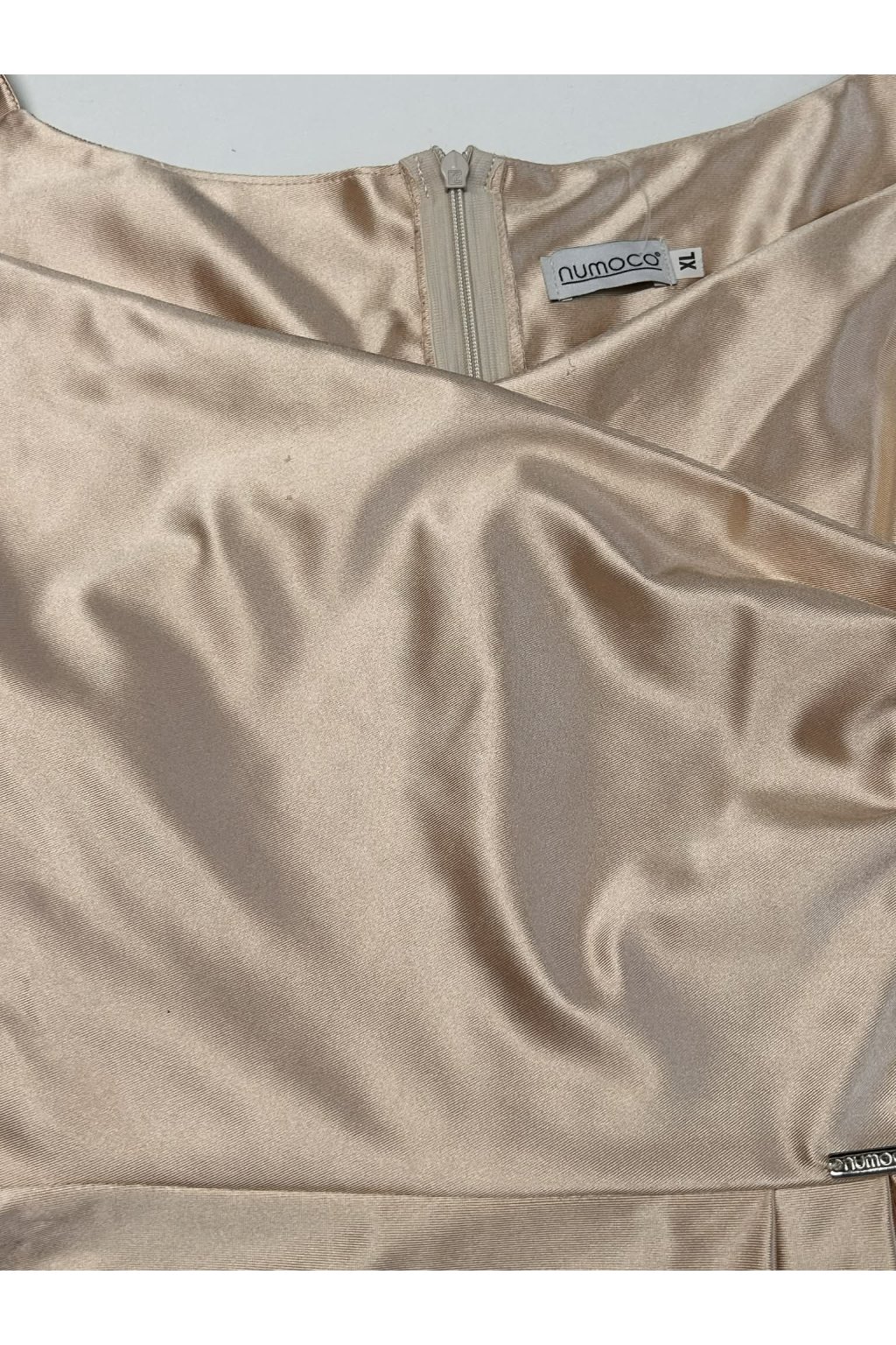 Krásne romantické šaty z vás vykúzlia očarujúcu, príťažlivú dámu. Lesklý materiál a odhalený krok vďaka rozparku je zaručená kombinácia pútavého vzhľadu. Materiál šiat je mierne elastický a vzadu sa zapínajú zipsom.