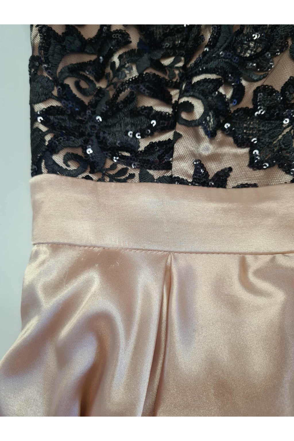 Poškodený tovar - Zlaté spoločenské šaty s čiernou krajkou