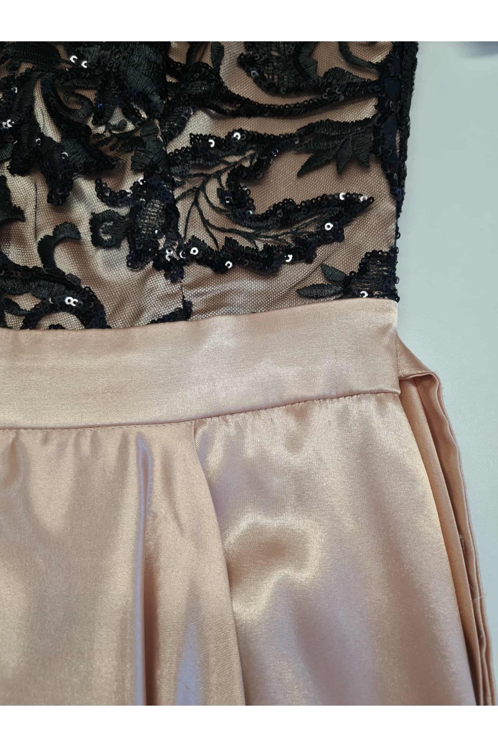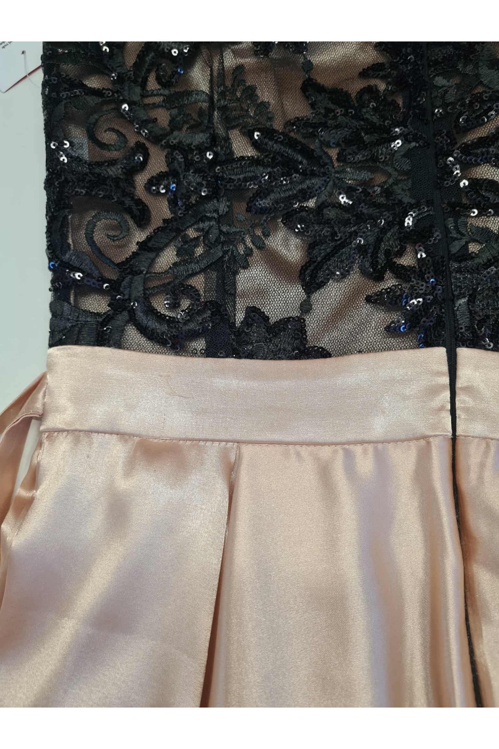 Poškodený tovar - Zlaté spoločenské šaty s čiernou krajkou