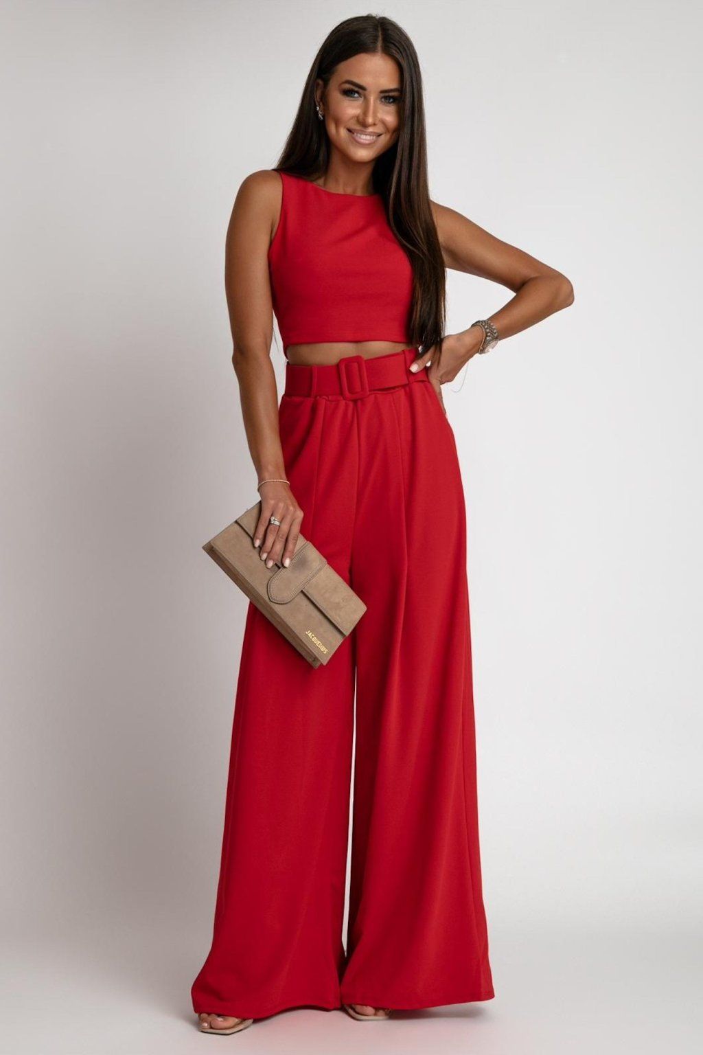 Štýlový komplet pre ženy, ktoré sa neboja byť výrazné. Krásna farba, elegantný strih a široké nohavice vytvárajú sofistikovaný outfit, ktorý je ideálny na výnimočné príležitosti aj večerné udalosti. Materiál kompletu je elastický.