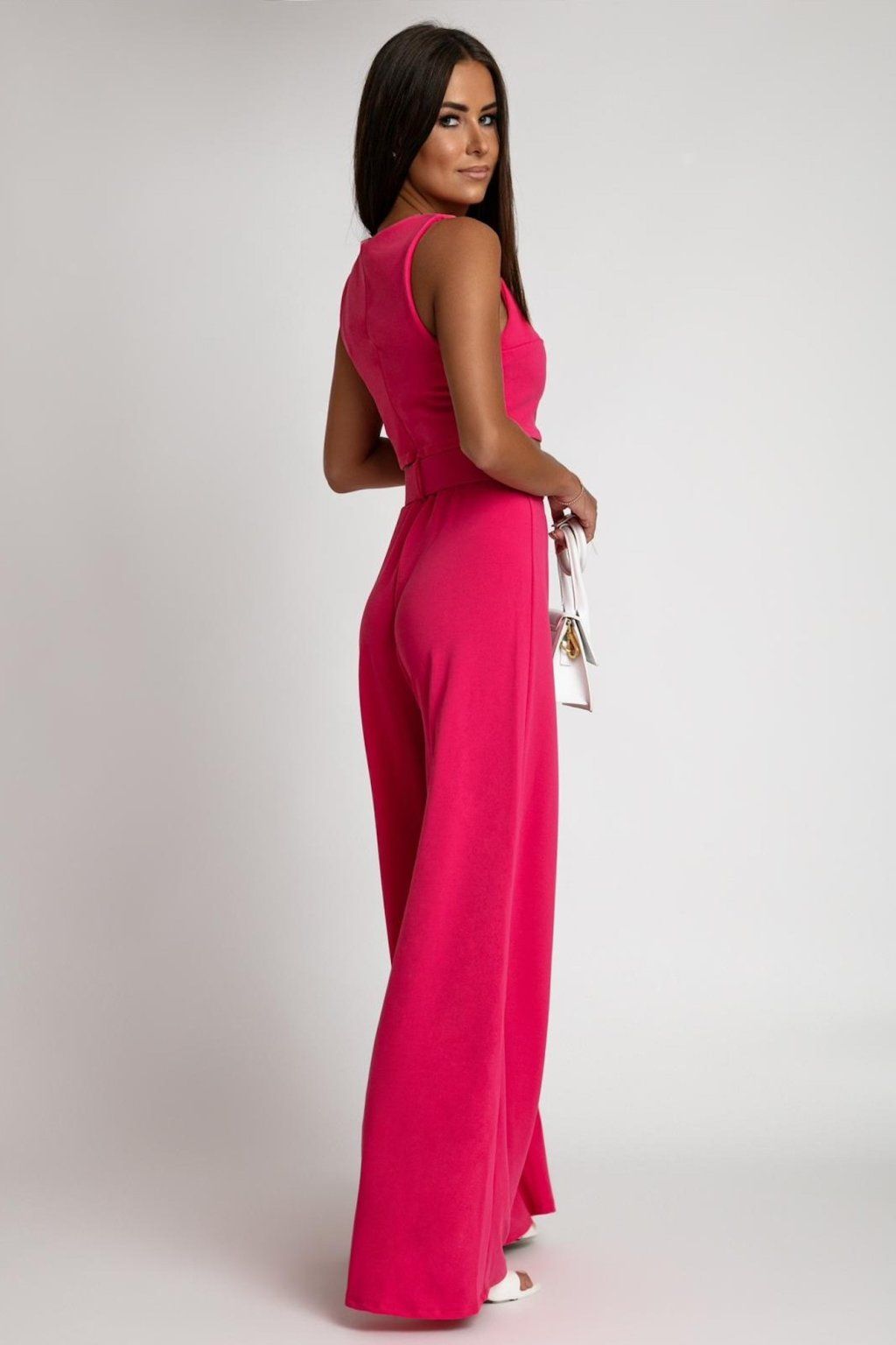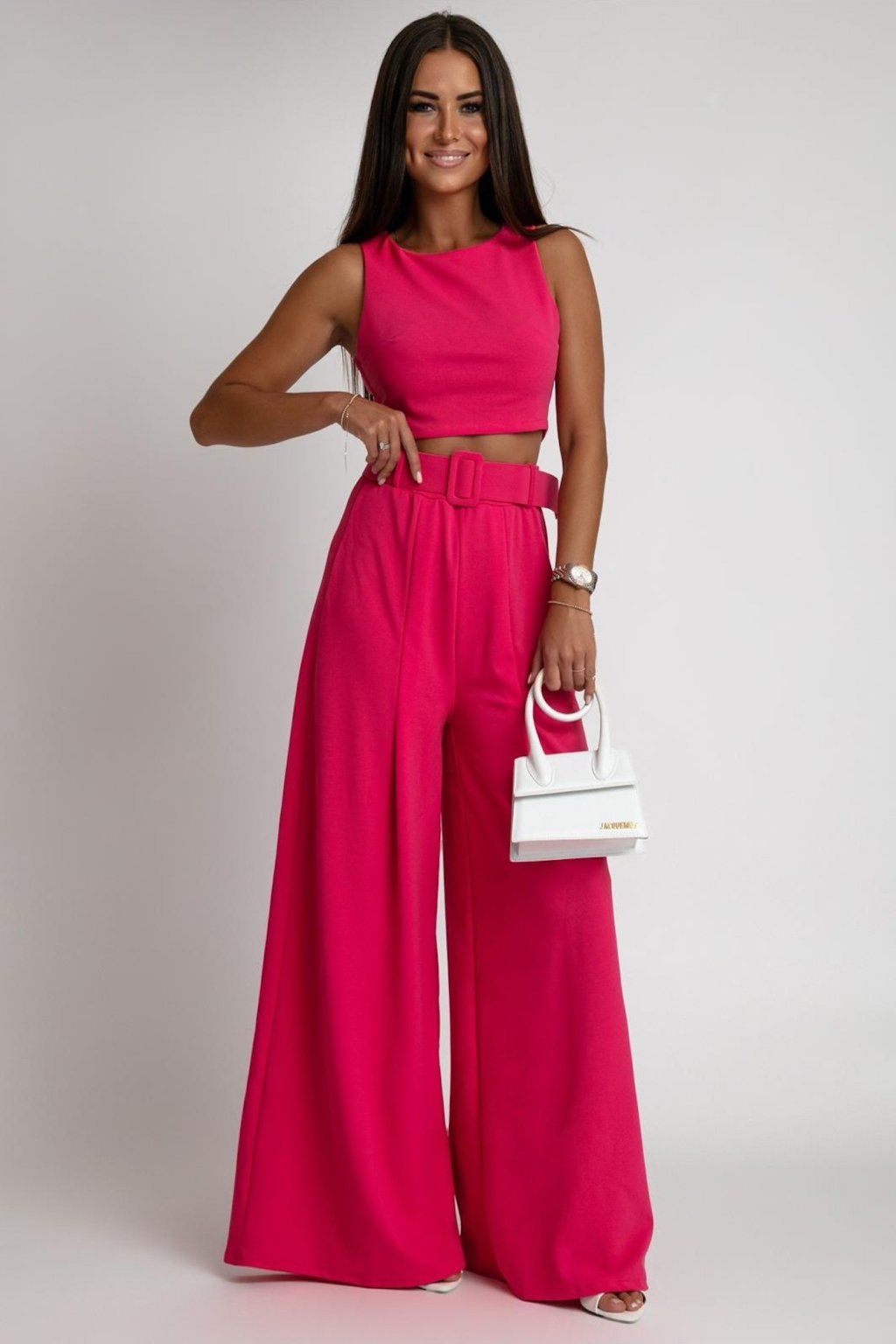 Štýlový komplet pre ženy, ktoré sa neboja byť výrazné. Krásna farba, elegantný strih a široké nohavice vytvárajú sofistikovaný outfit, ktorý je ideálny na výnimočné príležitosti aj večerné udalosti. Materiál kompletu je elastický.