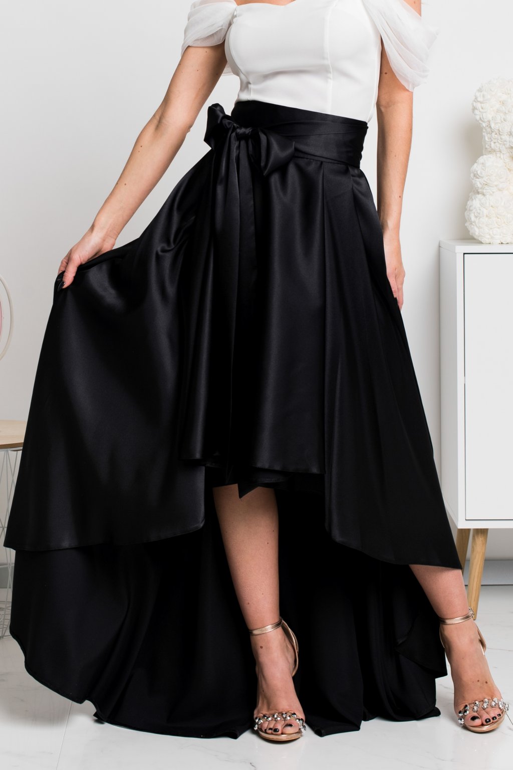 Čierna saténová asymetrická sukňa
