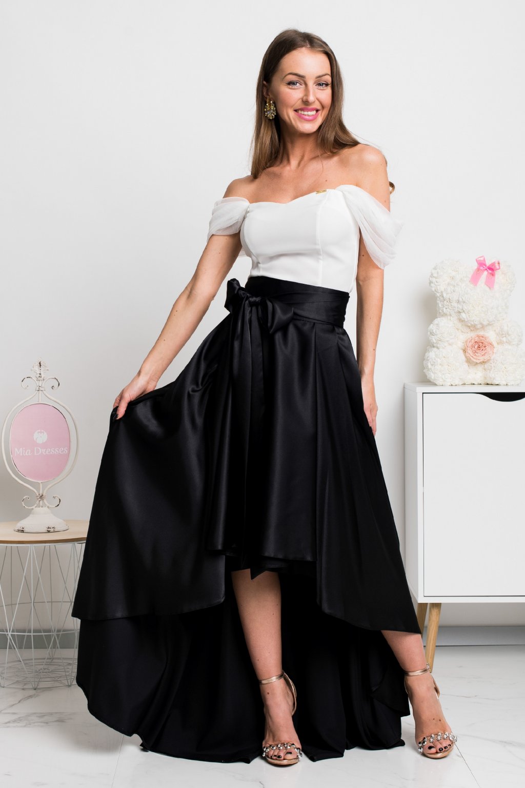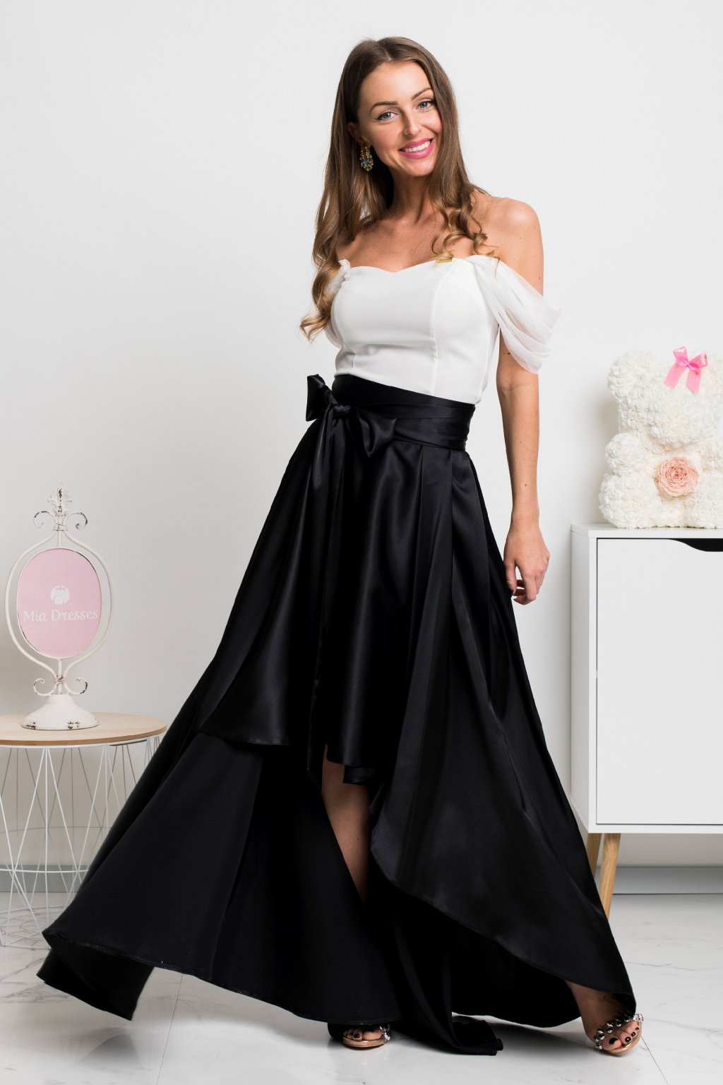 Luxusný vzhľad a pocit jedinečnosti vám zaručí táto saténová sukňa, ktorá si získa všetky pohľady vďaka nezvyčajnému asymetrickému strihu. Stuha v páse dodáva sukničke šmrnc. Vzadu sa zapína zipsom.