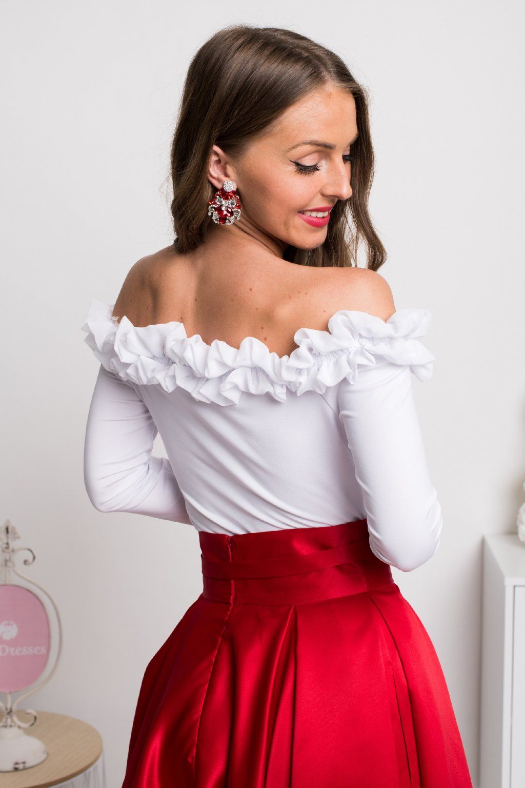 Biely top s rukávmi spustený na ramená