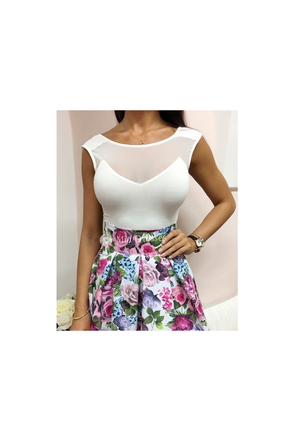 Toto body je vďaka jednoduchému strihu ľahko kombinovateľné s výraznými viacfarebnými sukničkami. Dekolt zdobí tyl a materiál je elastický, prispôsobivý.